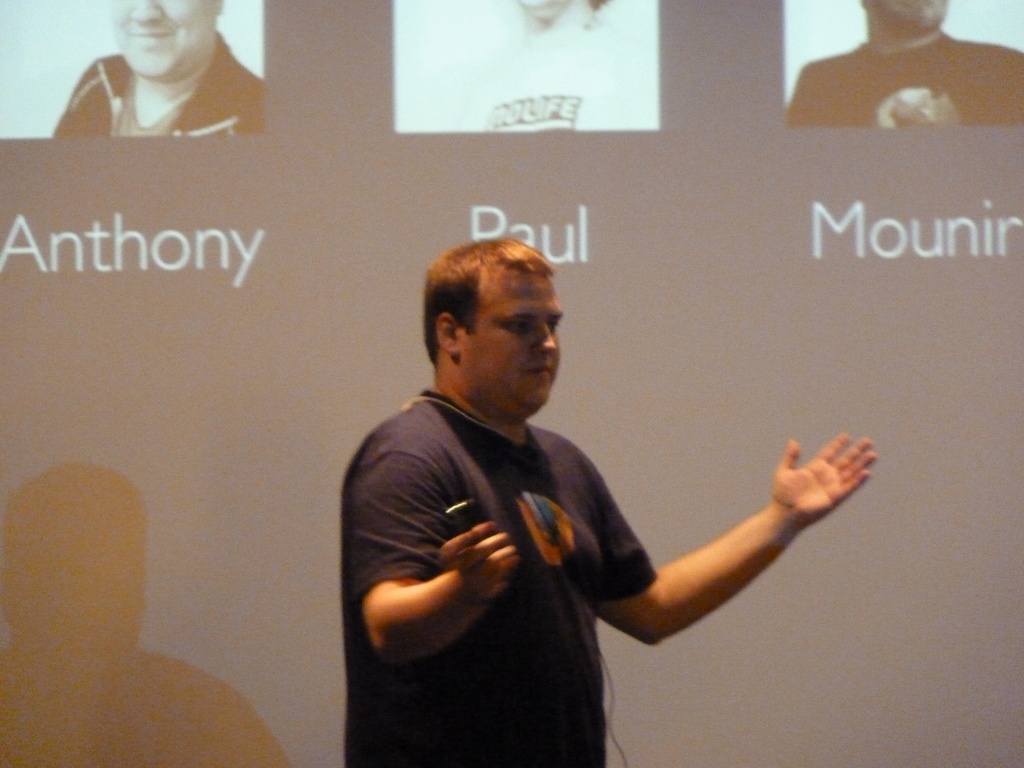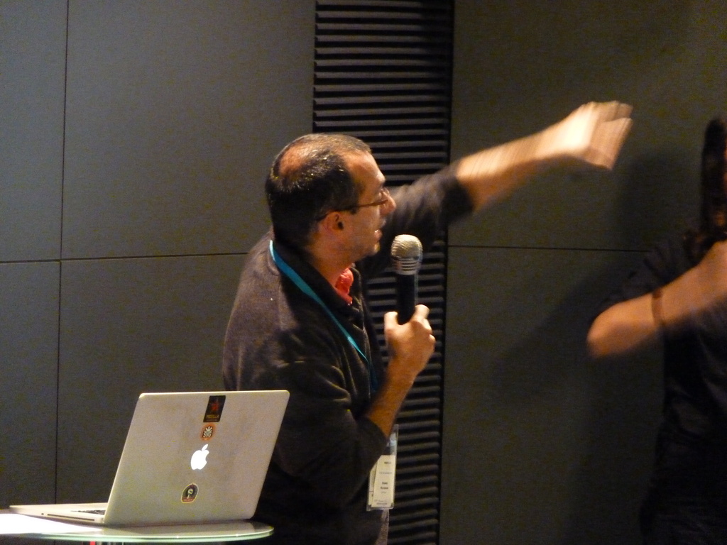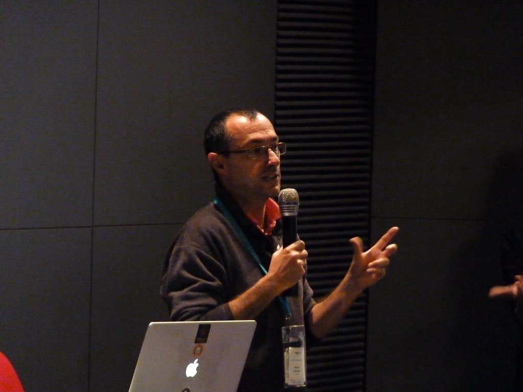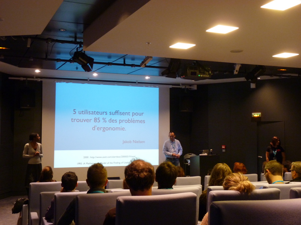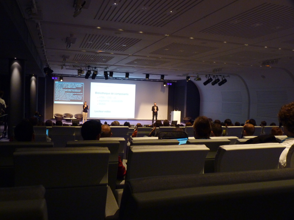J’étais donc dans le petit amphithéâtre où, malgré mes réticences envers HTML 5 (non, je n’ai pas changé d’avis) je m’apprêtais à écouter Mounir Lamouri faire le point sur « Formulaires HTML5 : où en est-on ? Que peut-on faire ? » quand une foule compacte a envahi l’amphi au point que les organisateurs faisant eux aussi preuve d’agilité ont décidé d’intervertir les amphis.