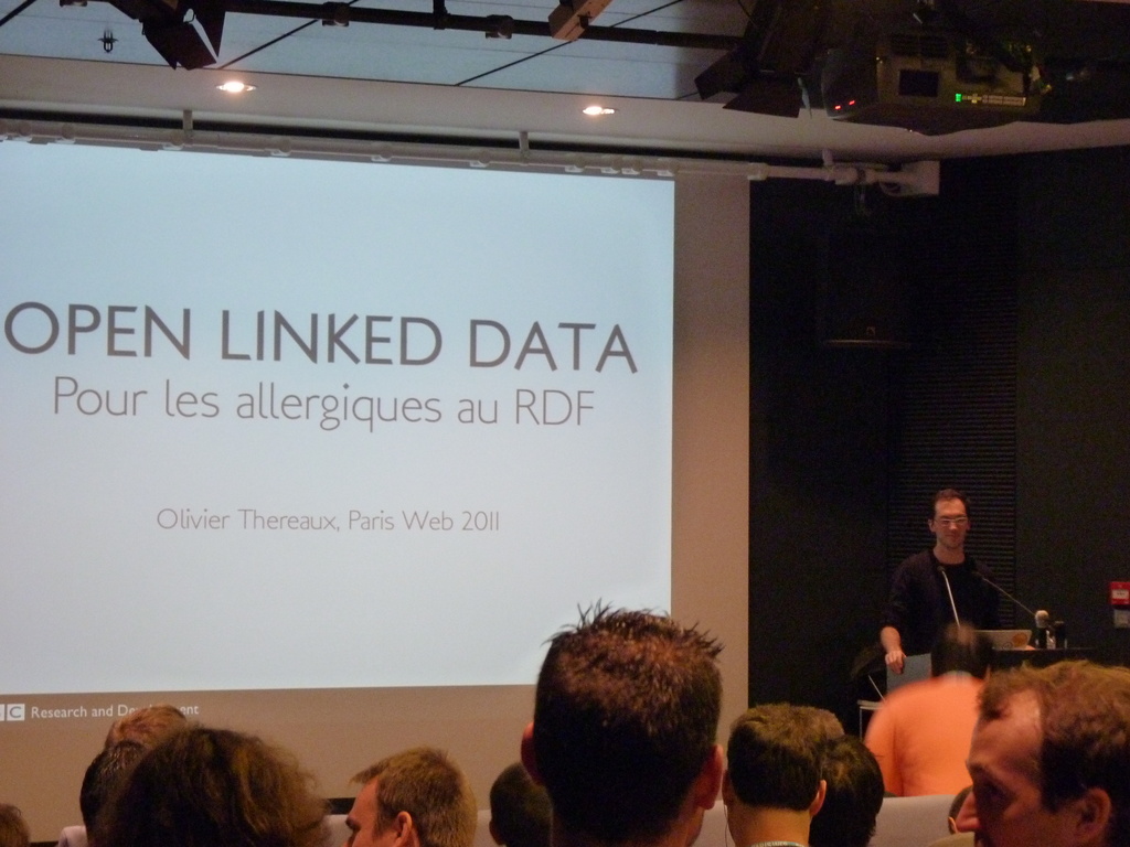 Olivier Thereaux avait choisi un titre ironique pour sa présentation « Les données ouvertes et liées (Linked Open Data) pour les allergiques au RDF » qui détaillait comment la BBC publie (notamment en RDF) et utilise les données du Web.