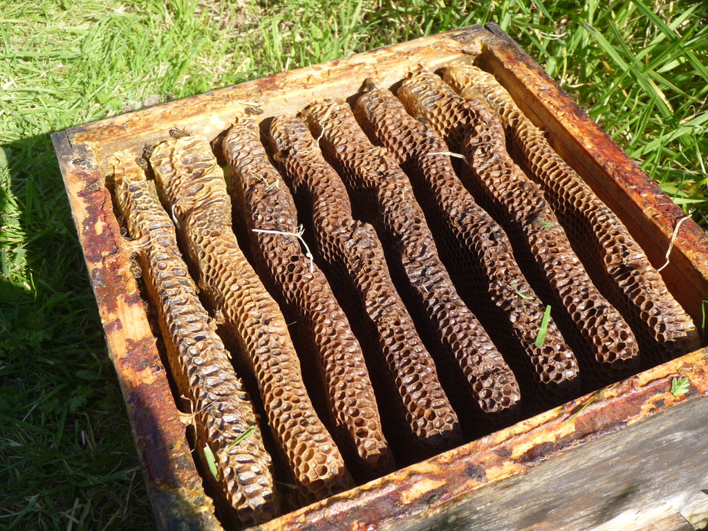 [fr] Élément de ruche warré plein de miel. [en] Warré hive box full with honey.