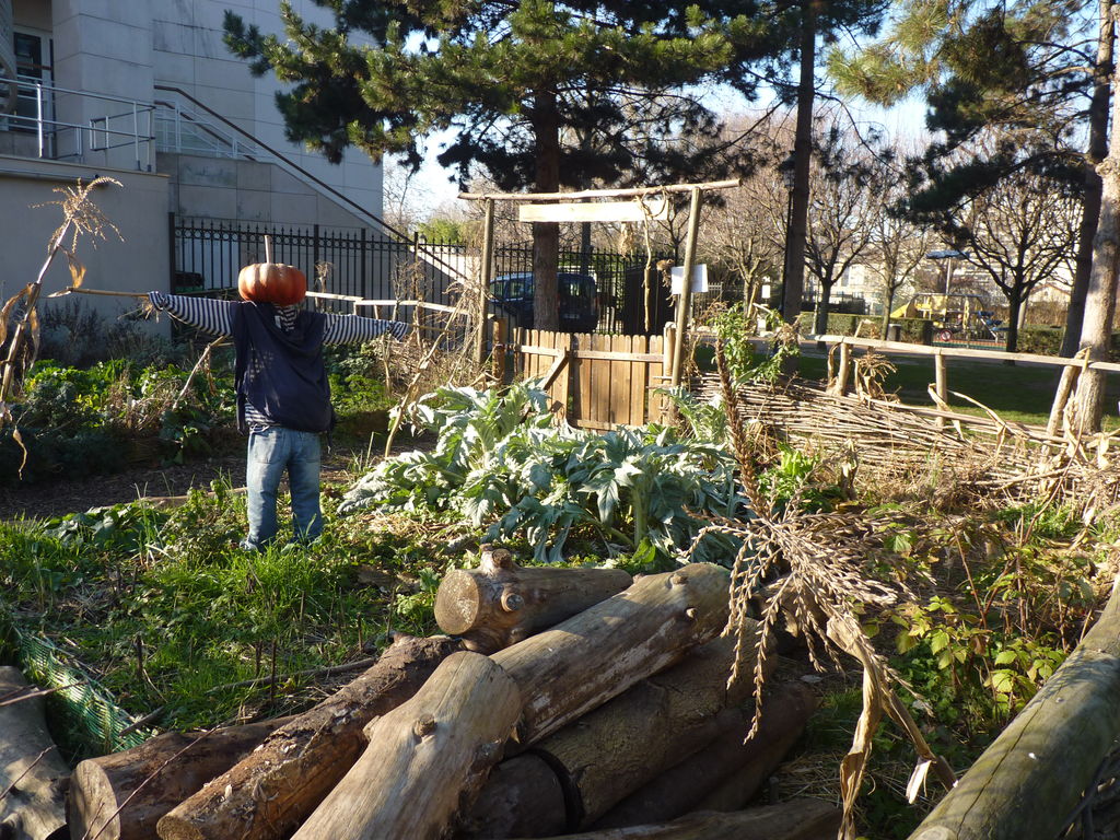 [en] A scarecrow in île de la Jatte‘s pedagogical garden.