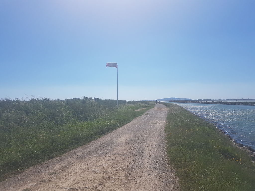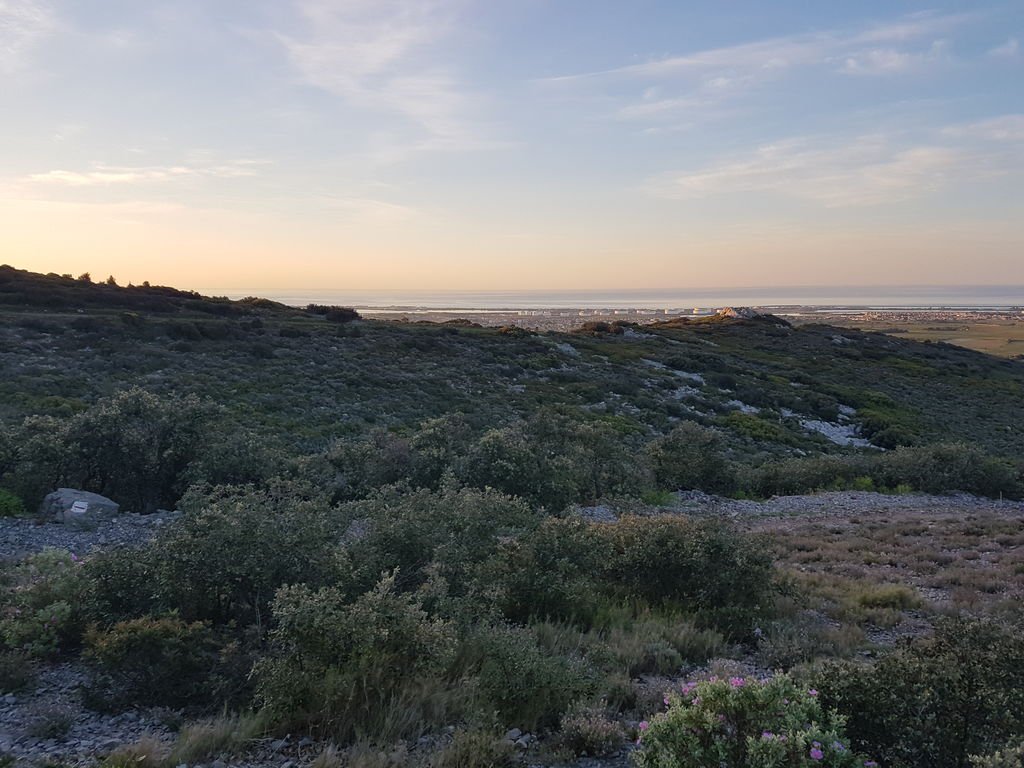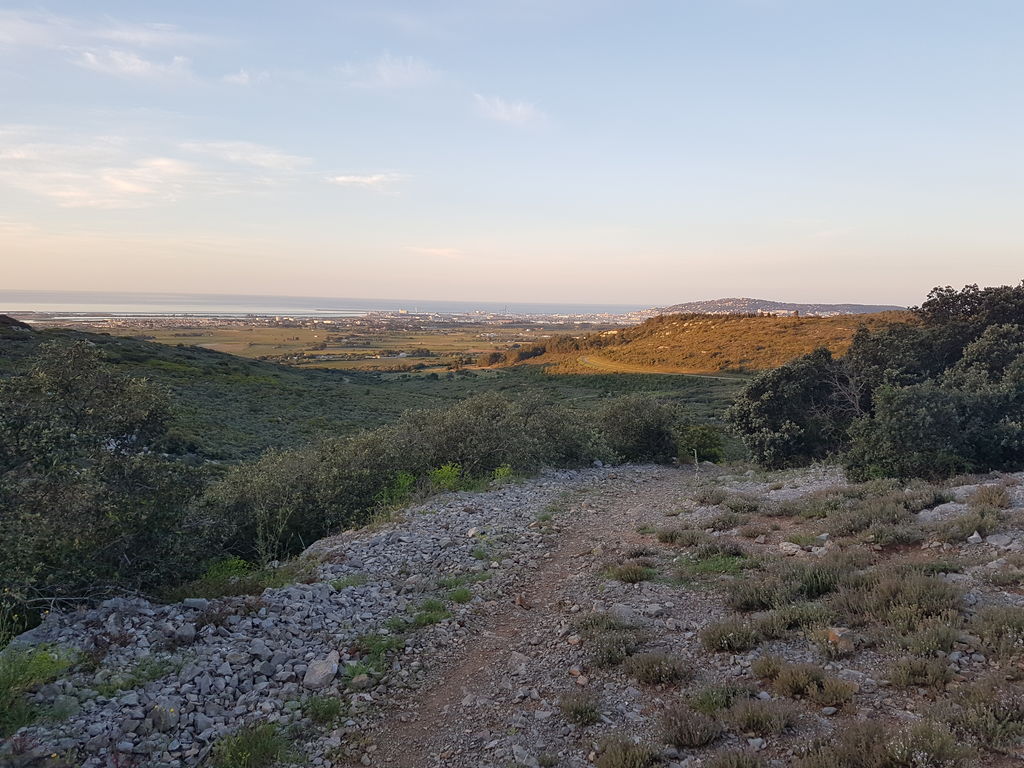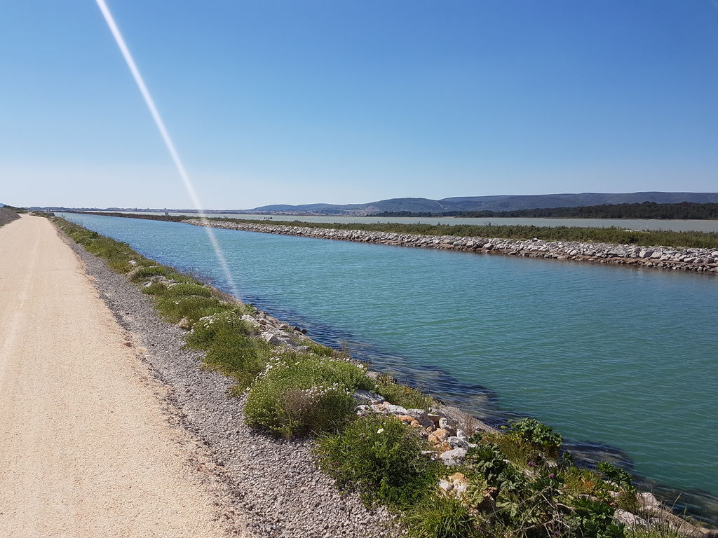 J’avais préparé, sur la carte, un parcours d’un peu plus de 58 km entre Sète où j’habite maintenant et la cathédrale de Maguelonne en passant par le massif de la Gardiole à l’aller et la plage (baignade à la clé) et le chemin de halage du canal du Rhône à Sète pour le retour.