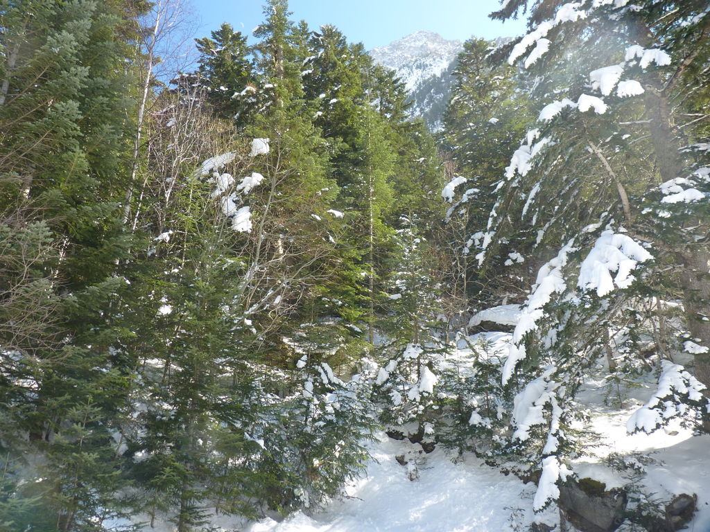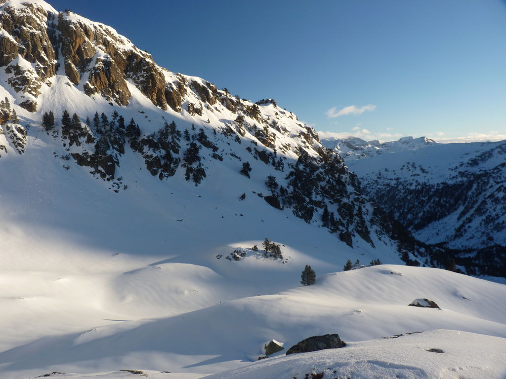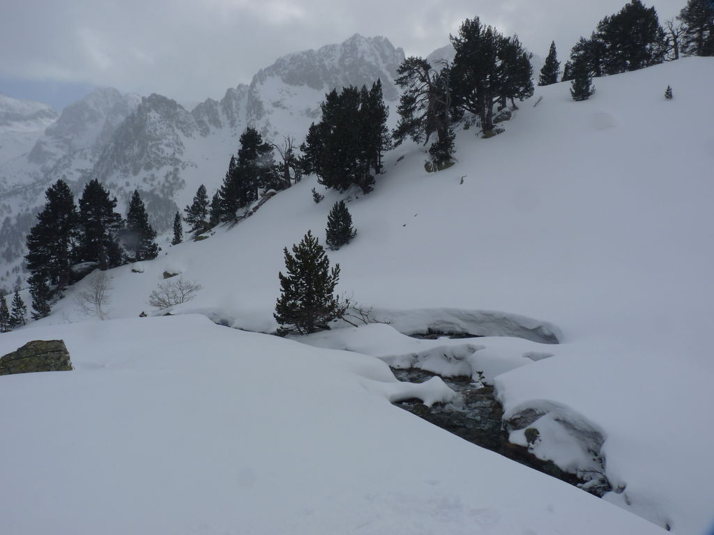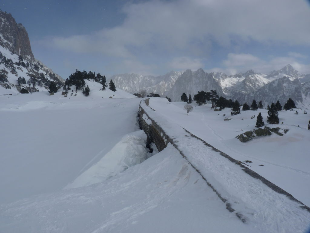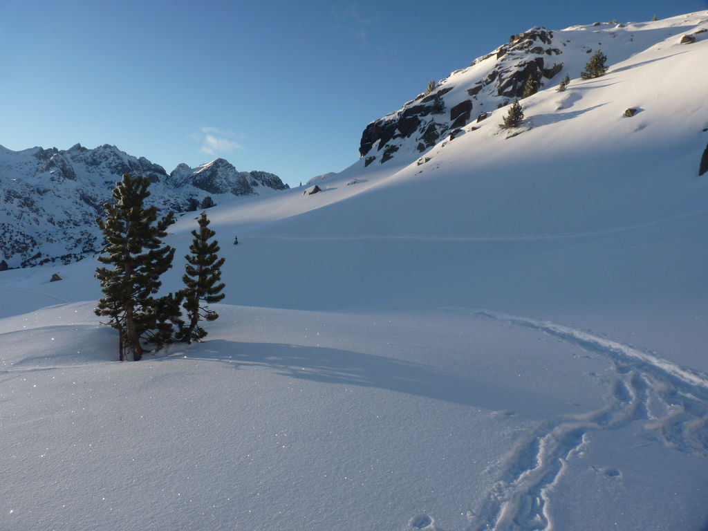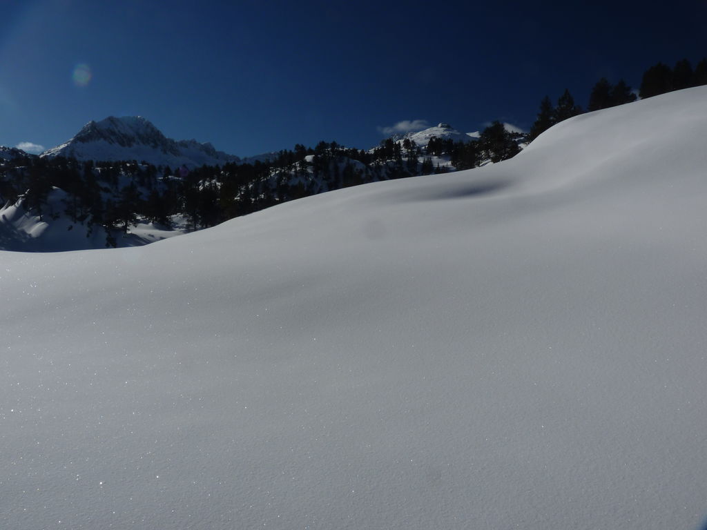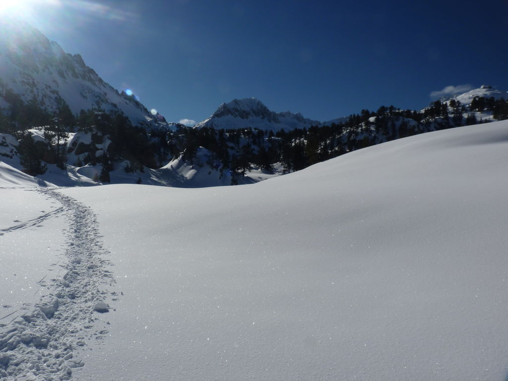 Transfert en Espagne, au sud d’Arties, petit village du Val d’Aran, où nous chaussons les raquettes pour une mise en jambe facile. Nous remontons la vallée de Valardies à travers une magnifique forêt de pins pour accéder au refuge de la Restanca (2010m) où nous passons notre première nuit.