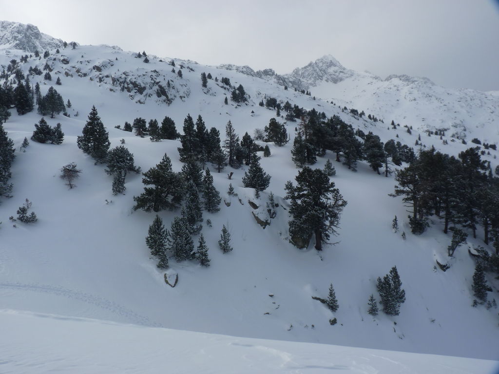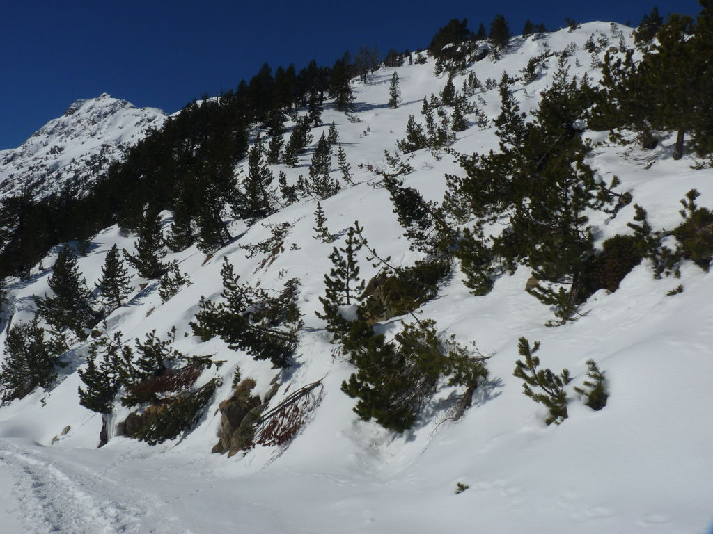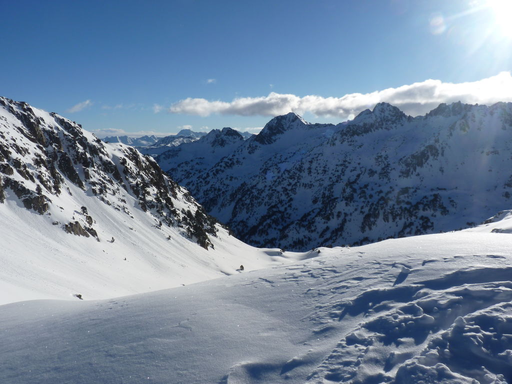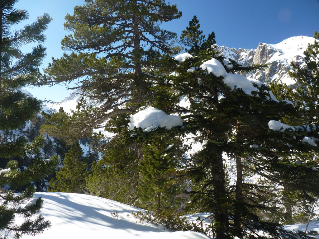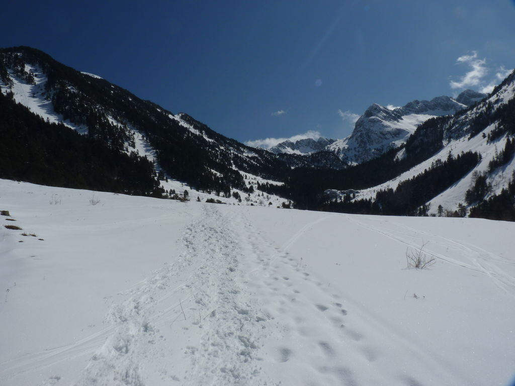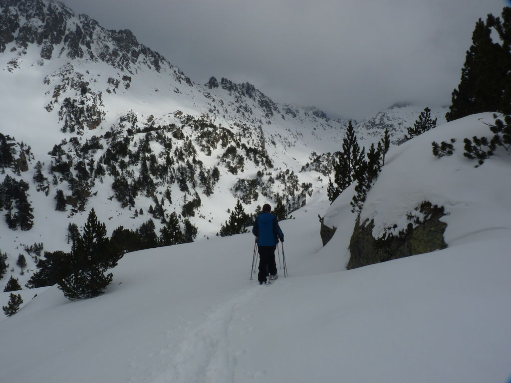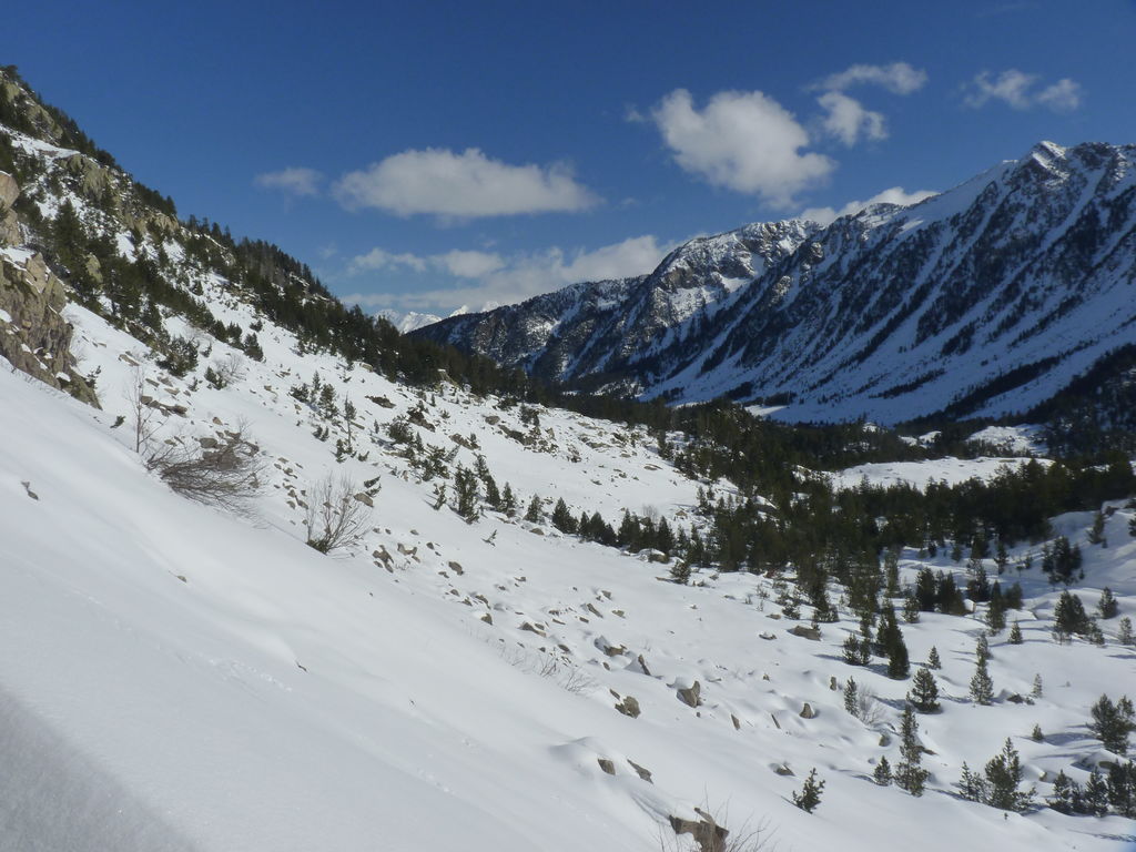 Transfert en Espagne, au sud d’Arties, petit village du Val d’Aran, où nous chaussons les raquettes pour une mise en jambe facile. Nous remontons la vallée de Valardies à travers une magnifique forêt de pins pour accéder au refuge de la Restanca (2010m) où nous passons notre première nuit.
