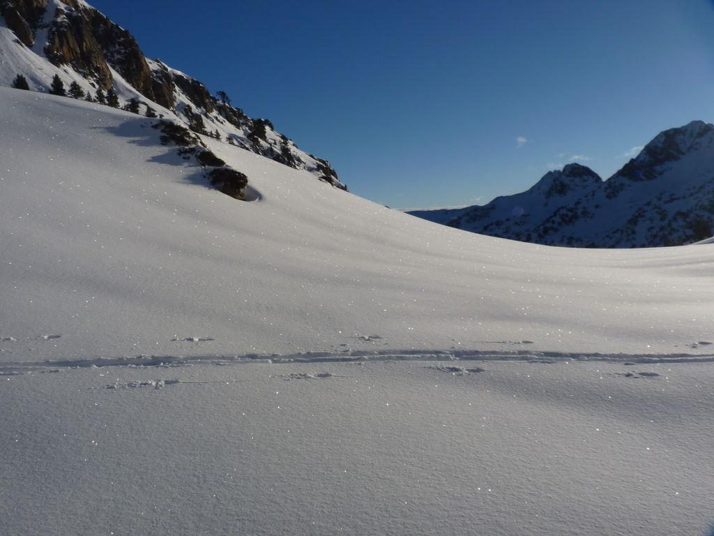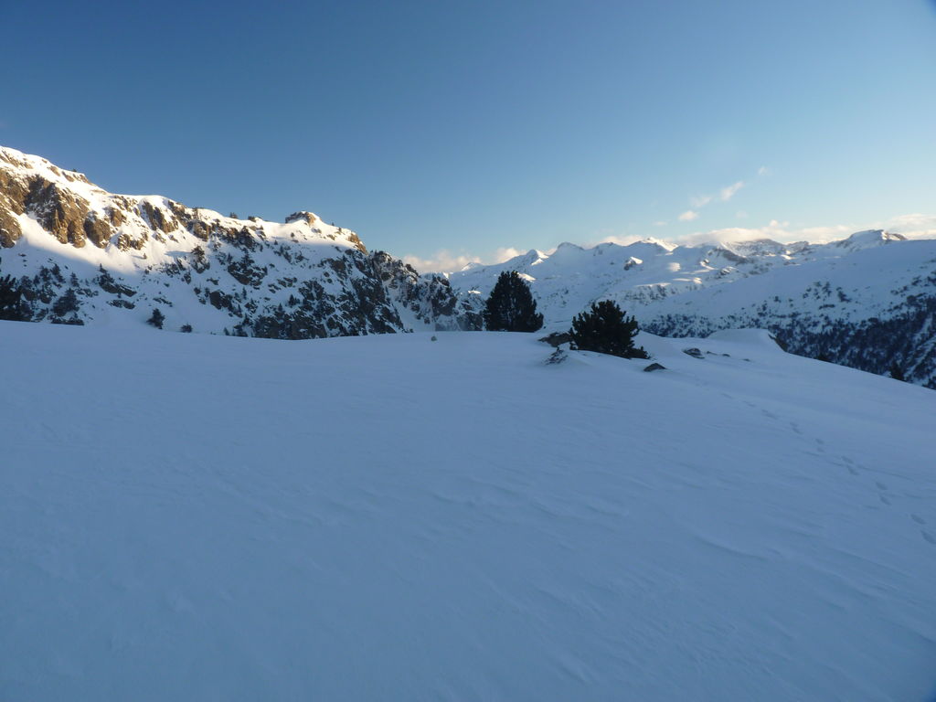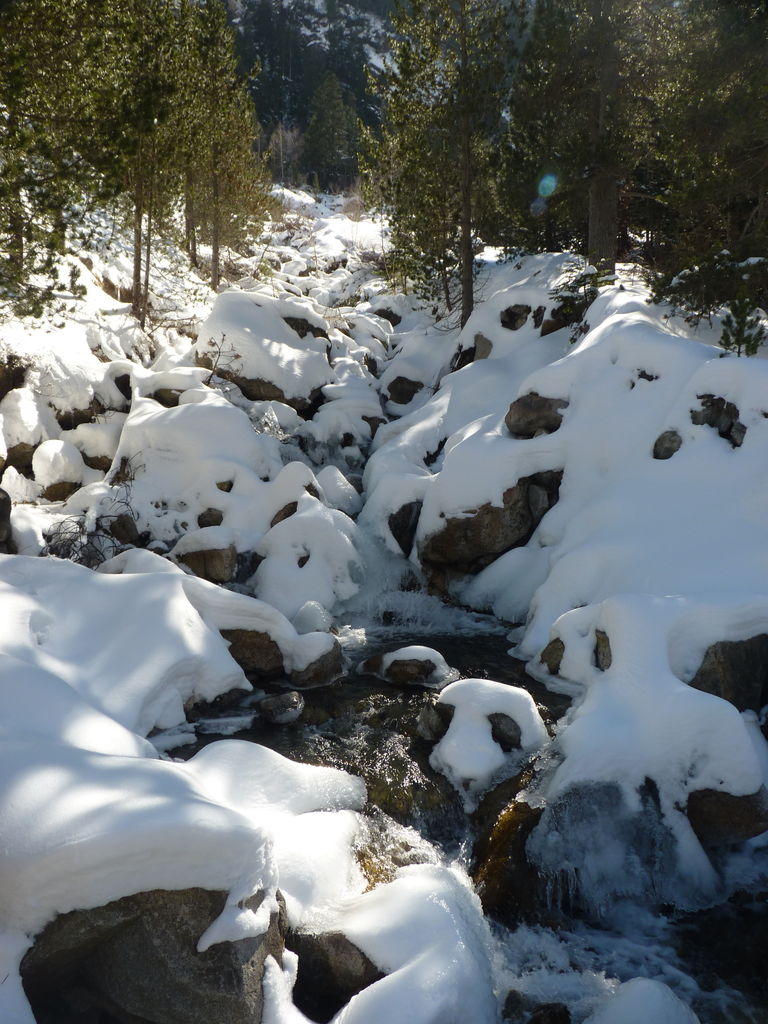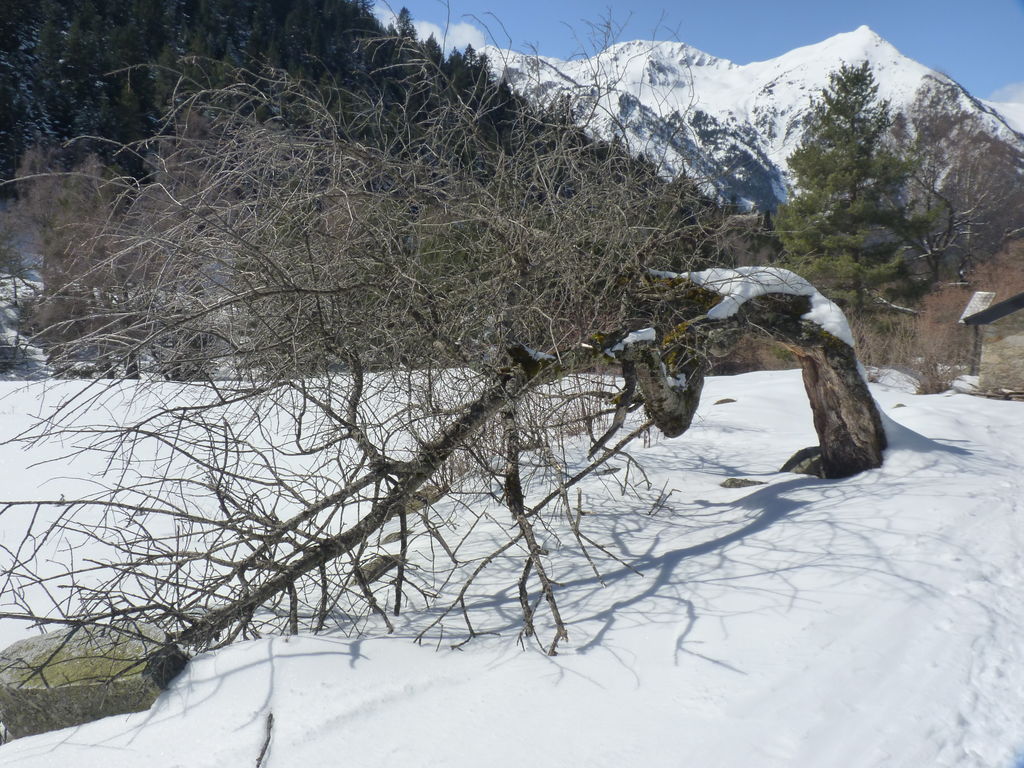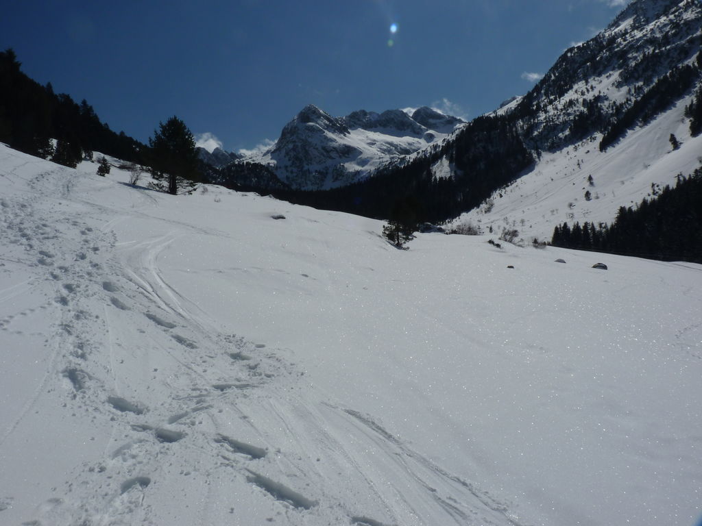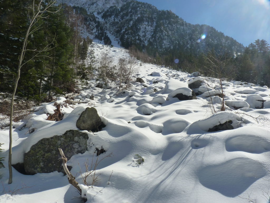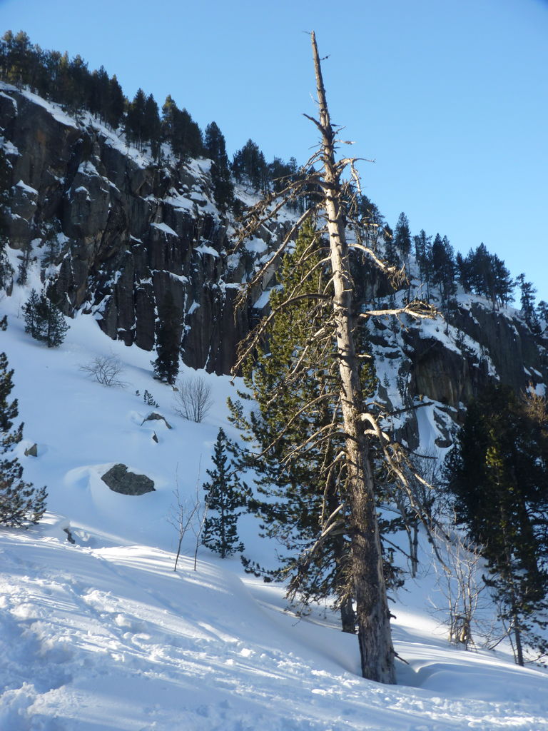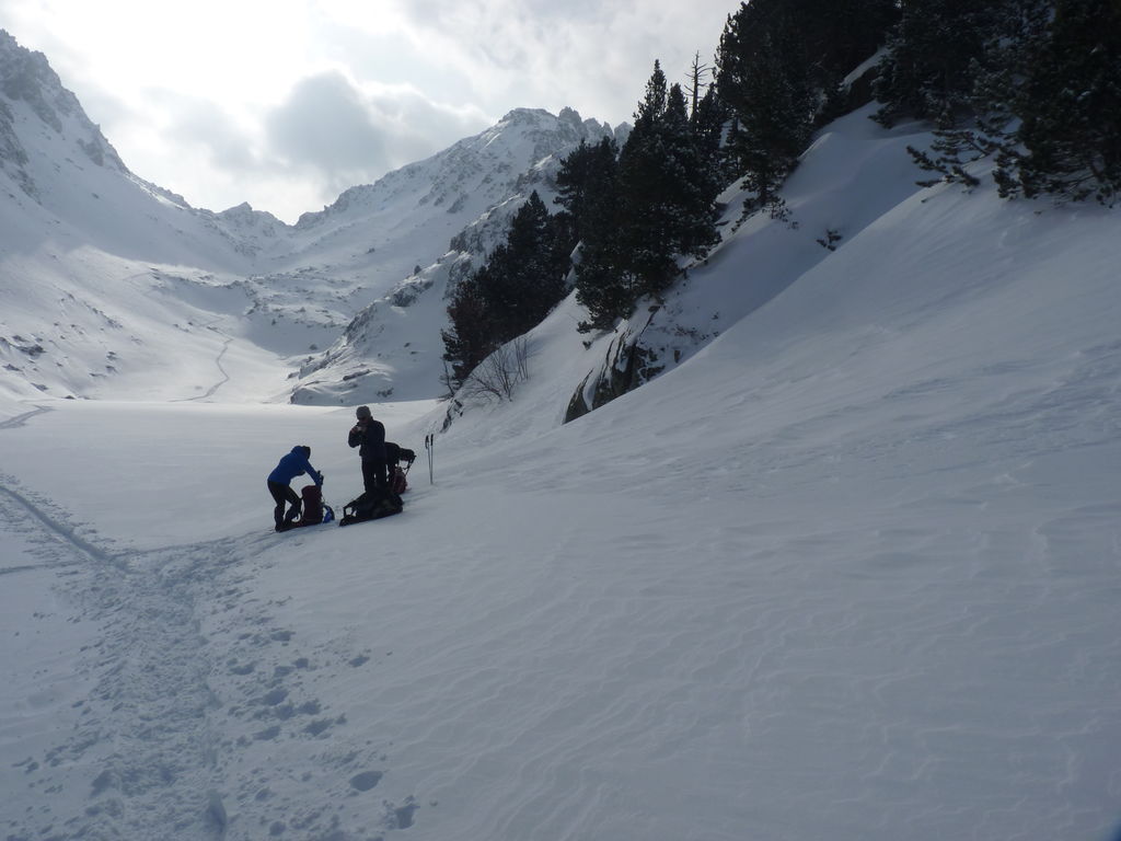 Transfert en Espagne, au sud d’Arties, petit village du Val d’Aran, où nous chaussons les raquettes pour une mise en jambe facile. Nous remontons la vallée de Valardies à travers une magnifique forêt de pins pour accéder au refuge de la Restanca (2010m) où nous passons notre première nuit.