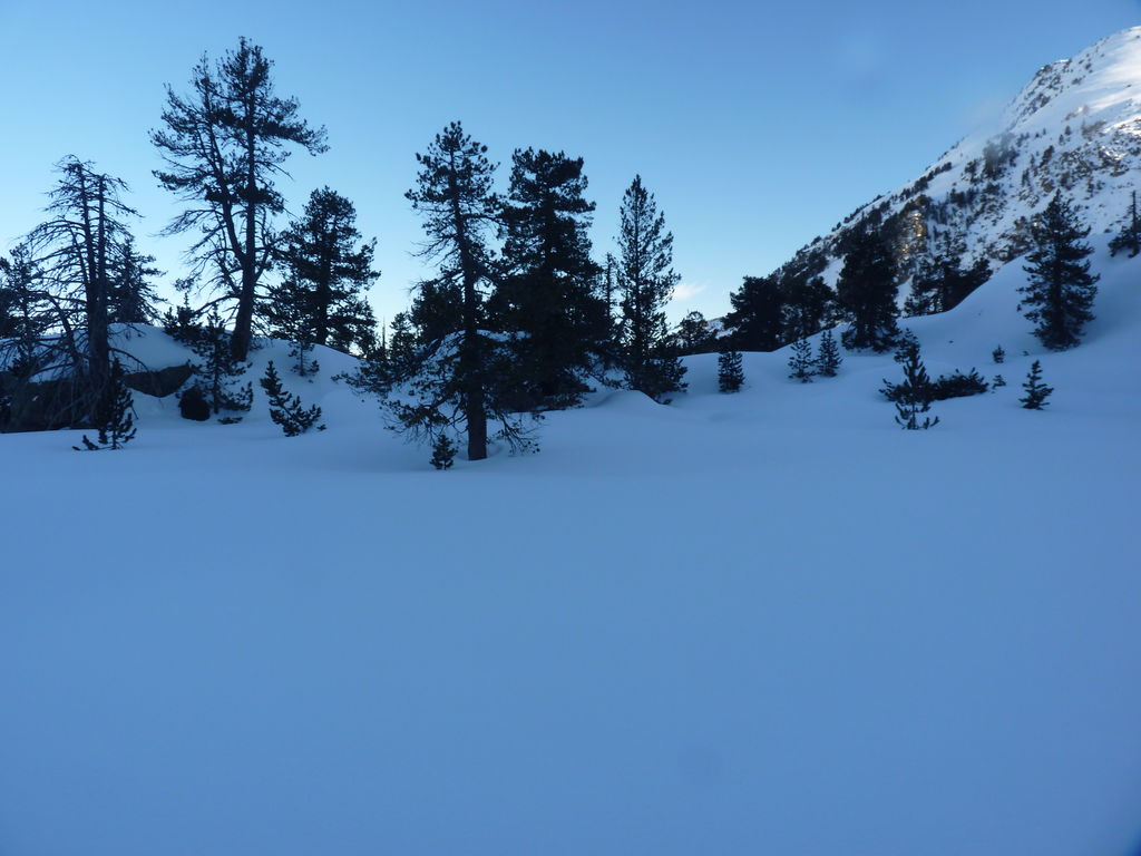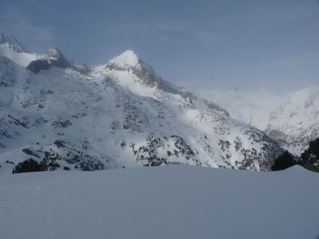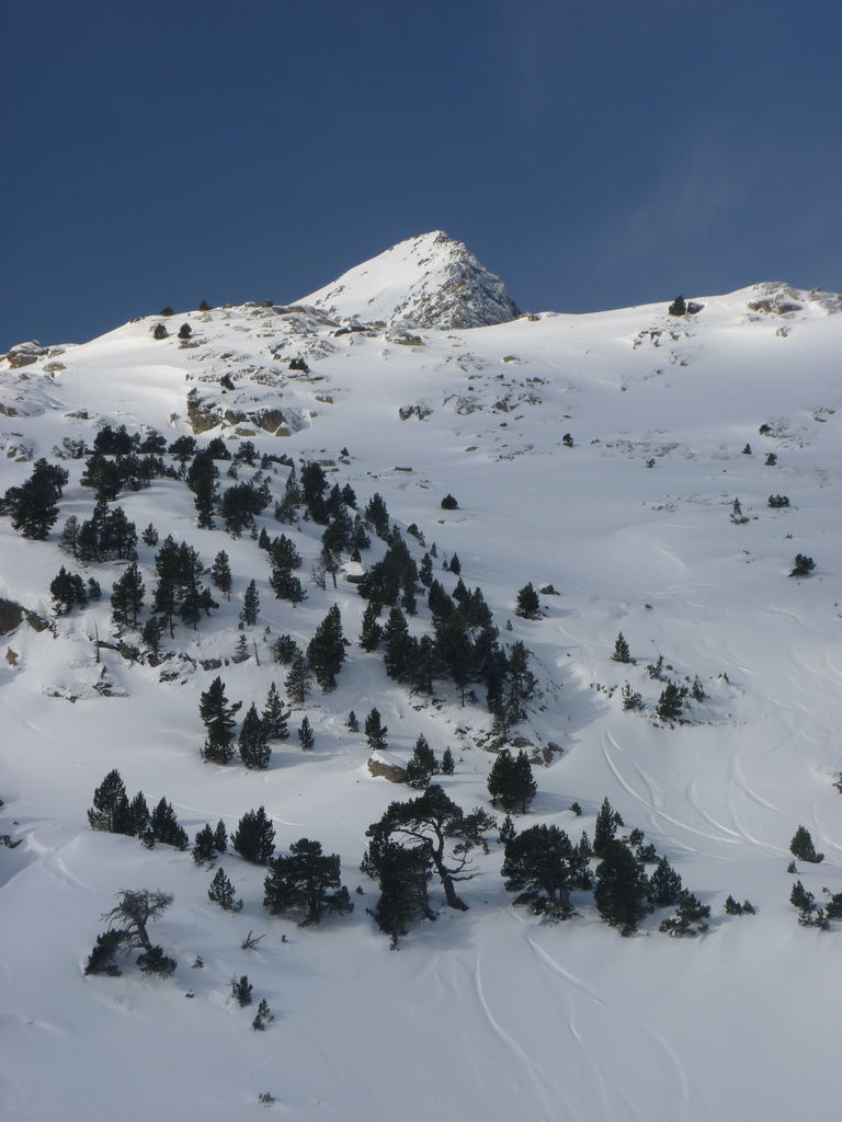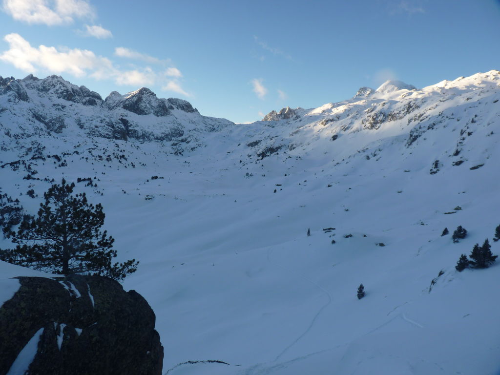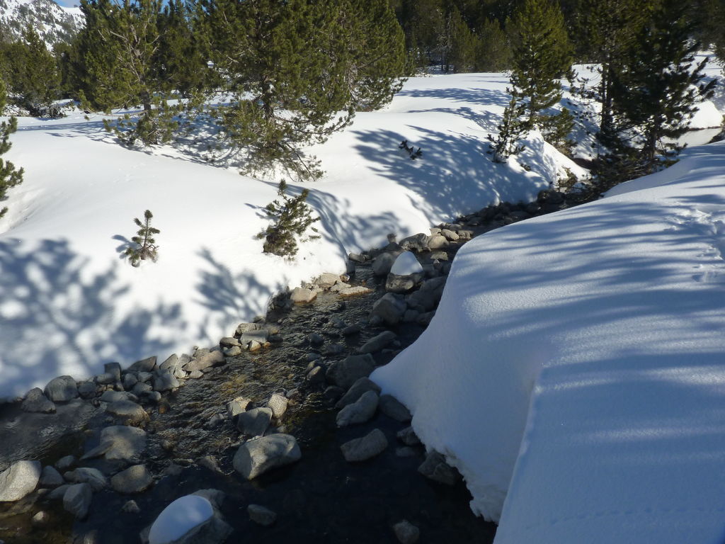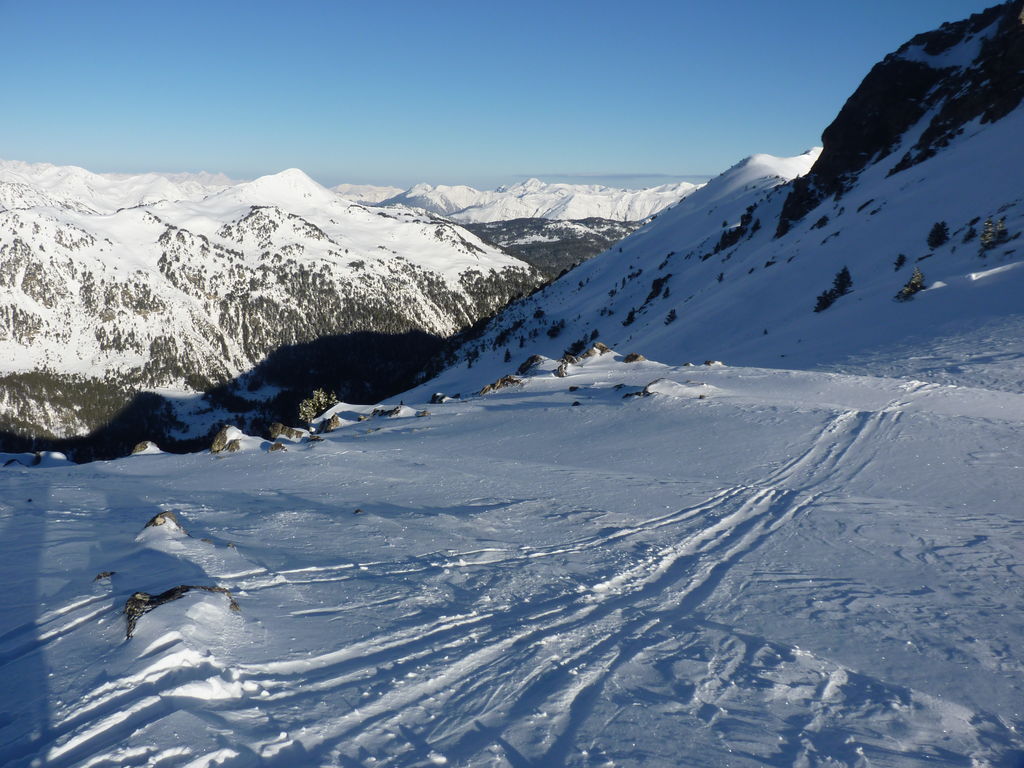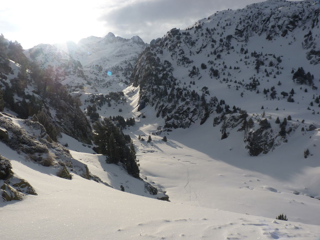Transfert en Espagne, au sud d’Arties, petit village du Val d’Aran, où nous chaussons les raquettes pour une mise en jambe facile. Nous remontons la vallée de Valardies à travers une magnifique forêt de pins pour accéder au refuge de la Restanca (2010m) où nous passons notre première nuit.