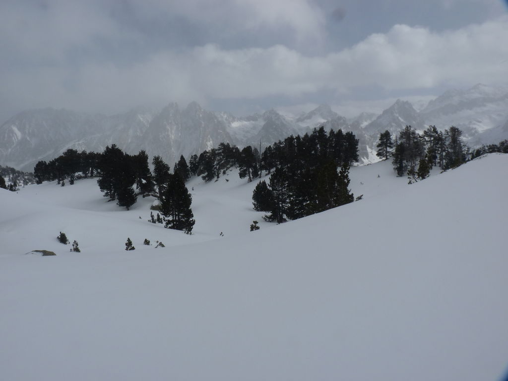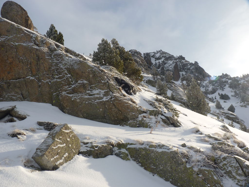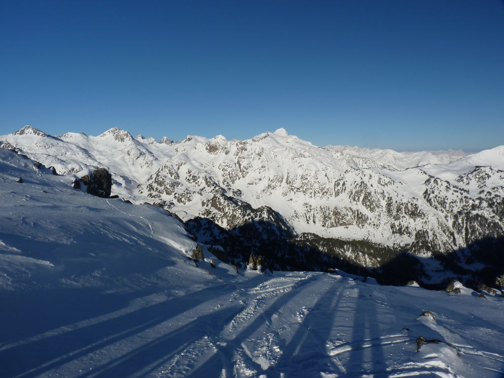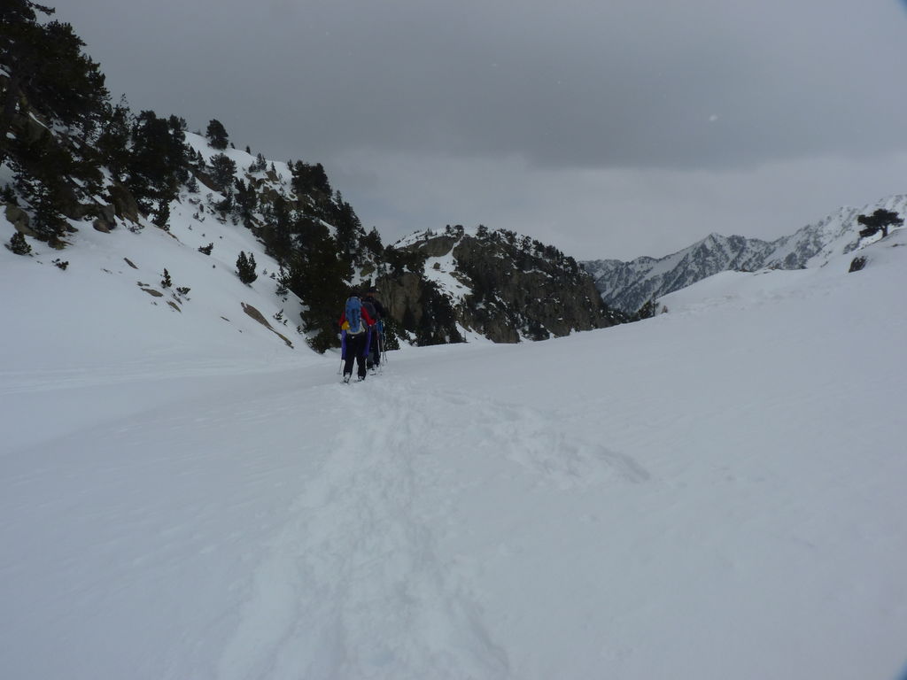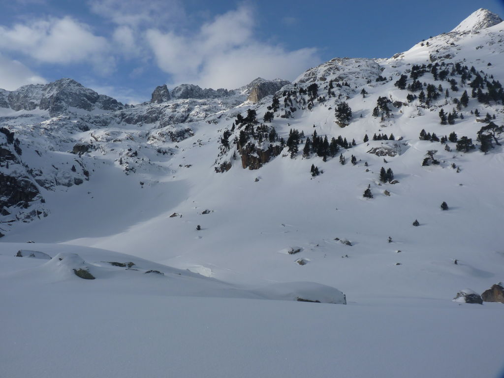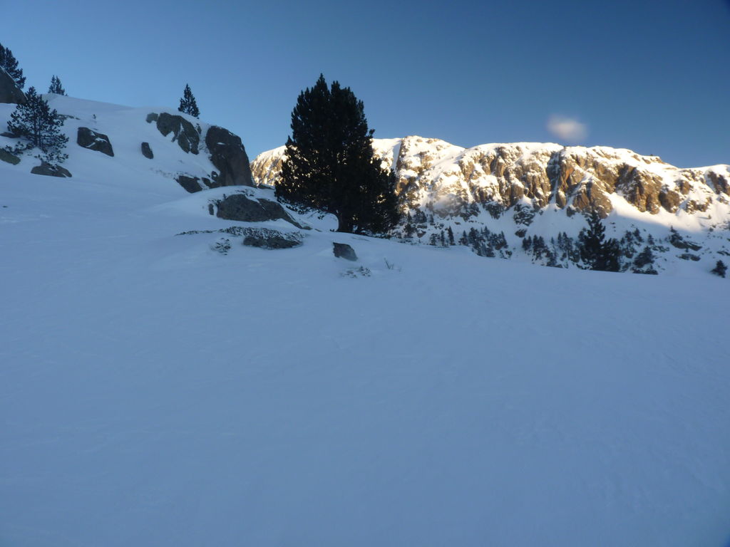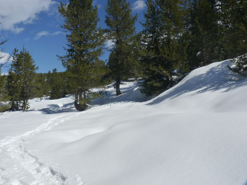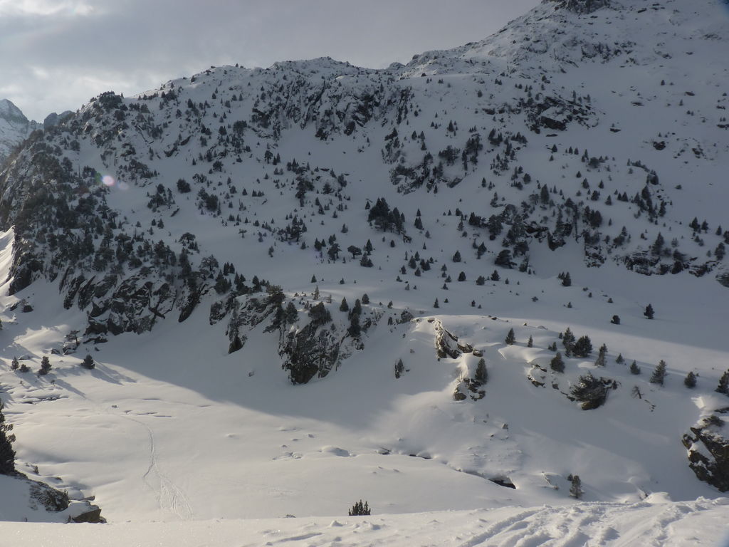 Transfert en Espagne, au sud d’Arties, petit village du Val d’Aran, où nous chaussons les raquettes pour une mise en jambe facile. Nous remontons la vallée de Valardies à travers une magnifique forêt de pins pour accéder au refuge de la Restanca (2010m) où nous passons notre première nuit.