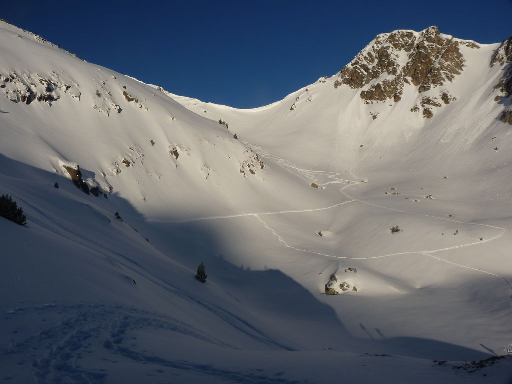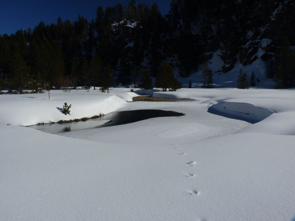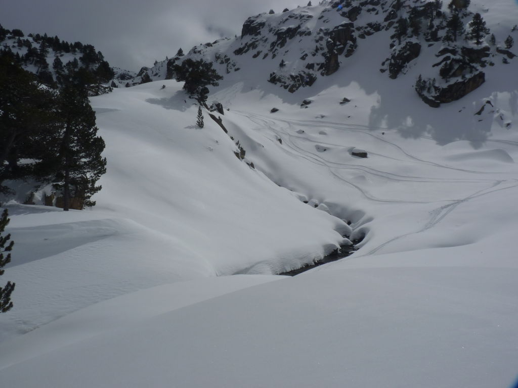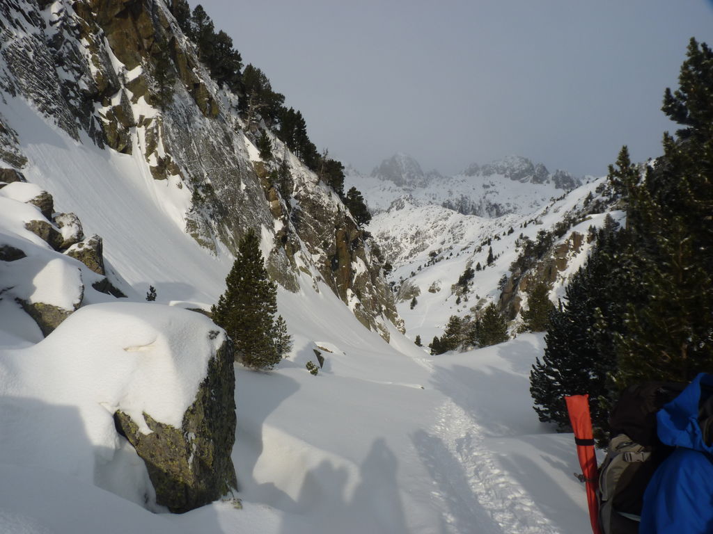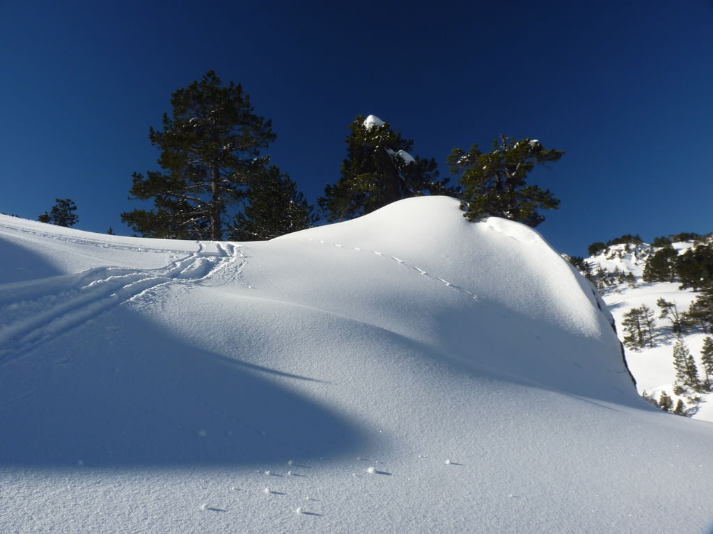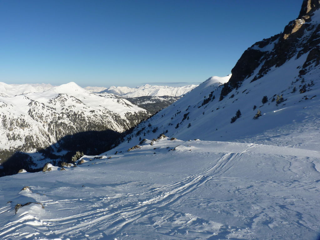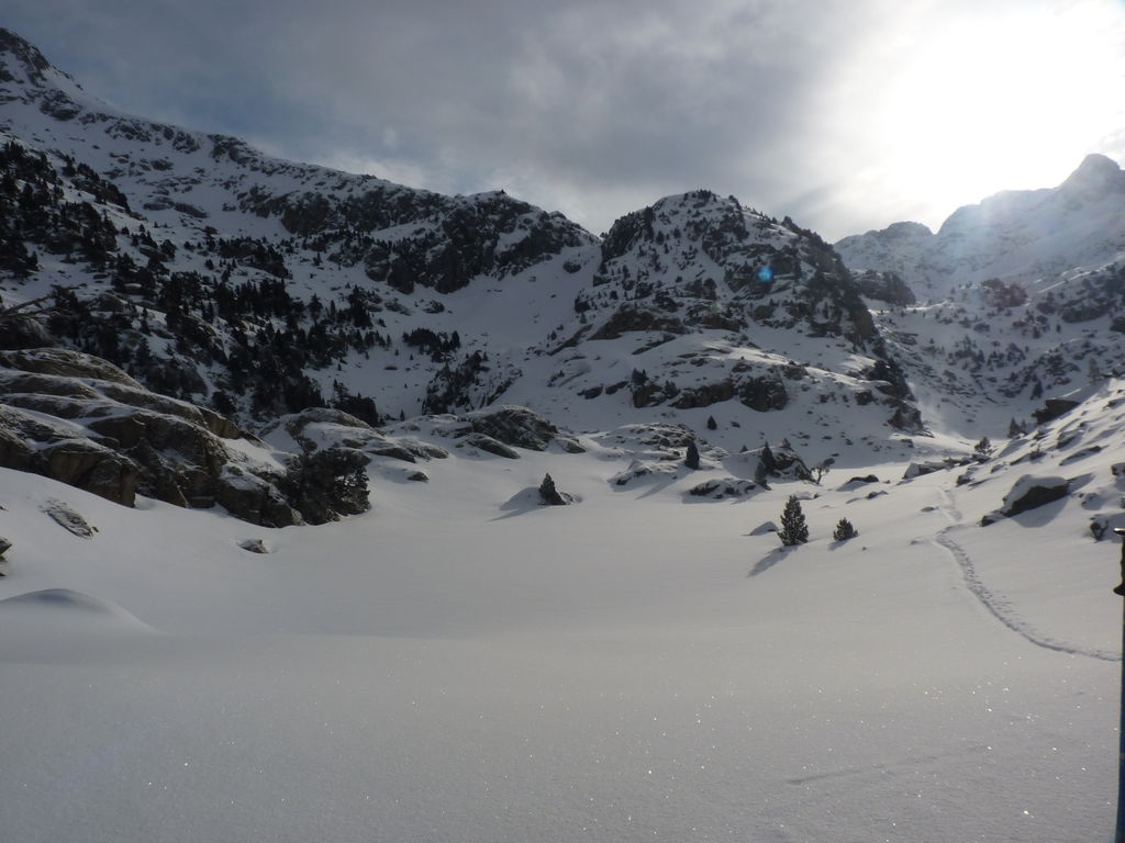 Transfert en Espagne, au sud d’Arties, petit village du Val d’Aran, où nous chaussons les raquettes pour une mise en jambe facile. Nous remontons la vallée de Valardies à travers une magnifique forêt de pins pour accéder au refuge de la Restanca (2010m) où nous passons notre première nuit.