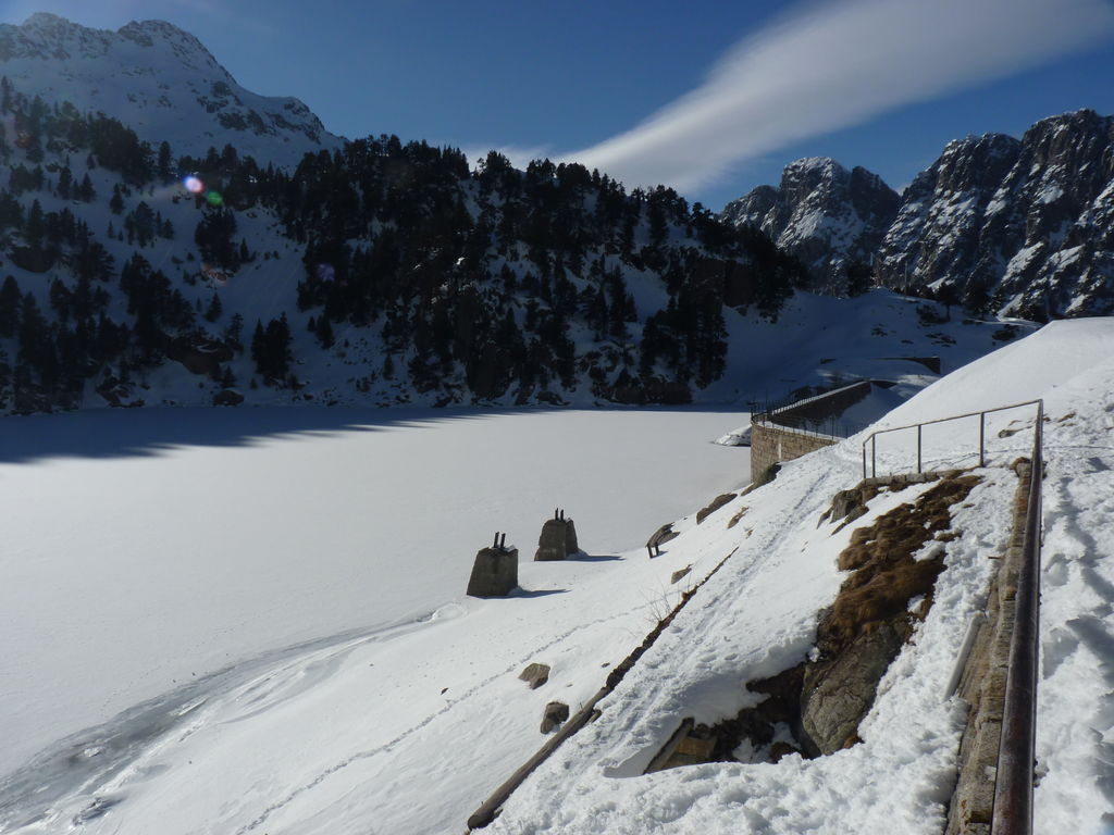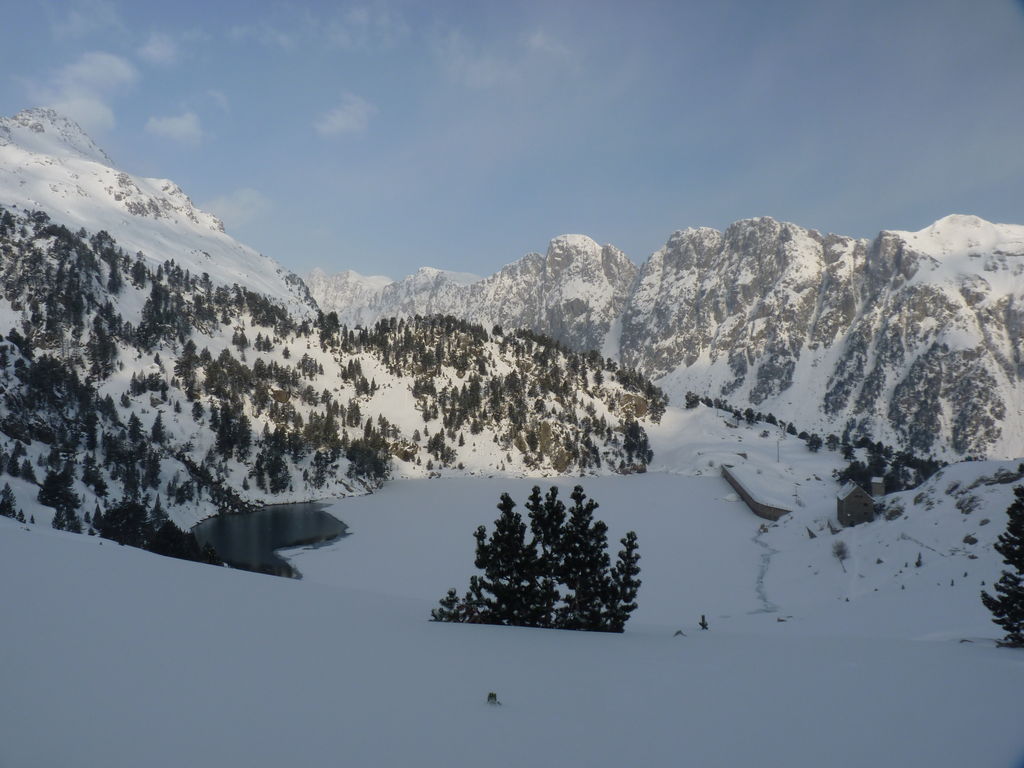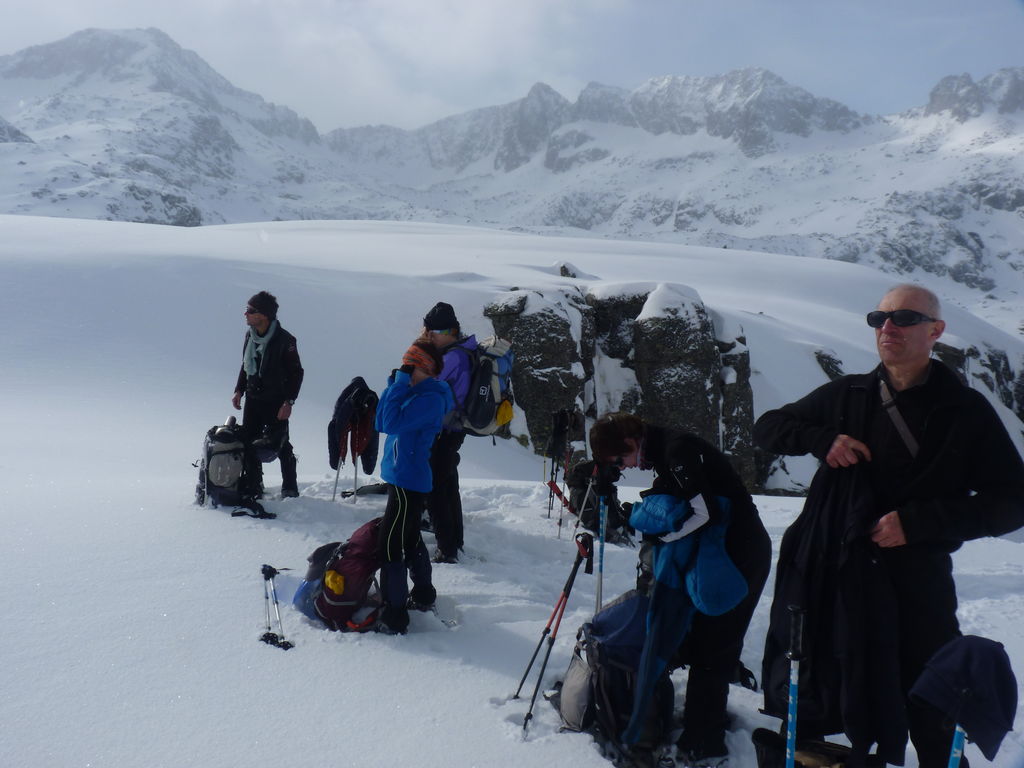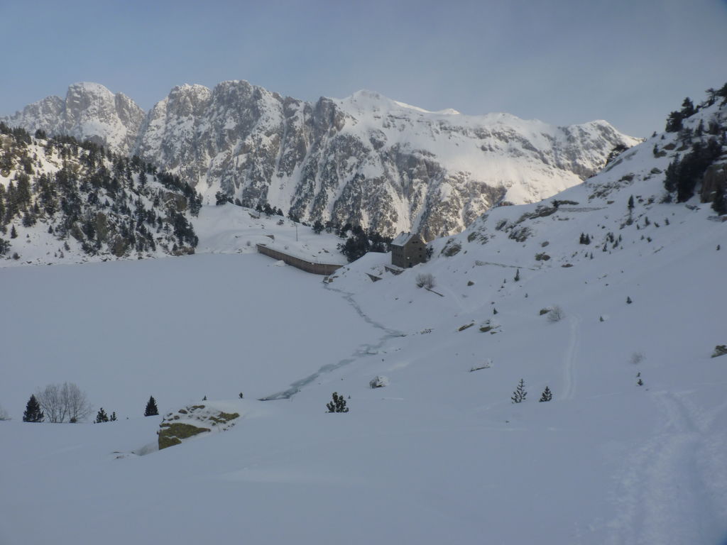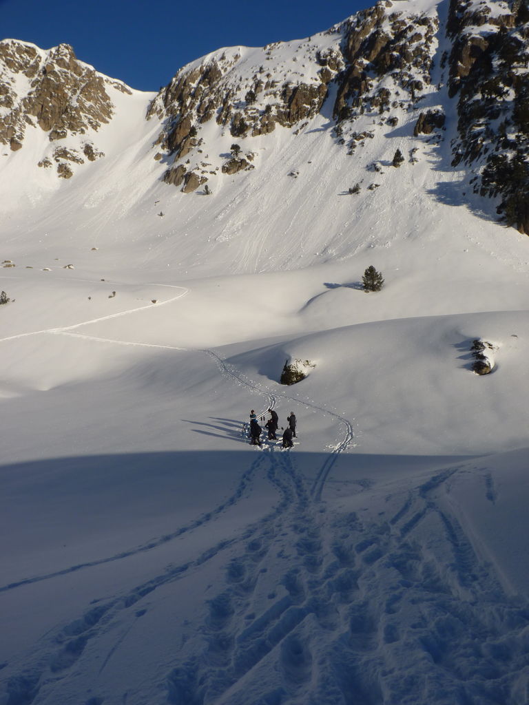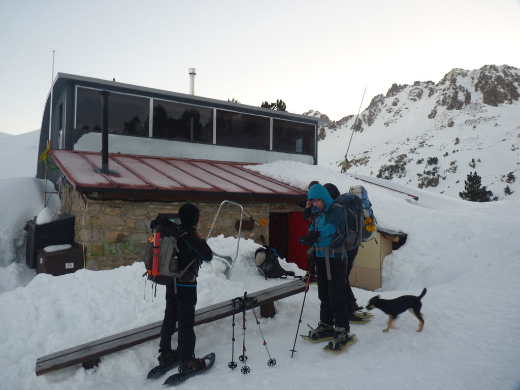 Pour se rendre au refuge de Ventosa i Calvell (2220m) via le Coret d’Oelhacrestada (2468m), ce n’est pas moins de huit lacs que nous rallierons un à un. Traverser ces « Estany », figés par la glace et recouverts d’un blanc manteau, procure des sensations uniques et inoubliables. Soirée dans un cadre grandiose…