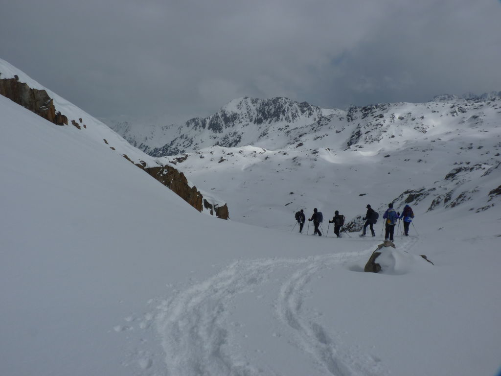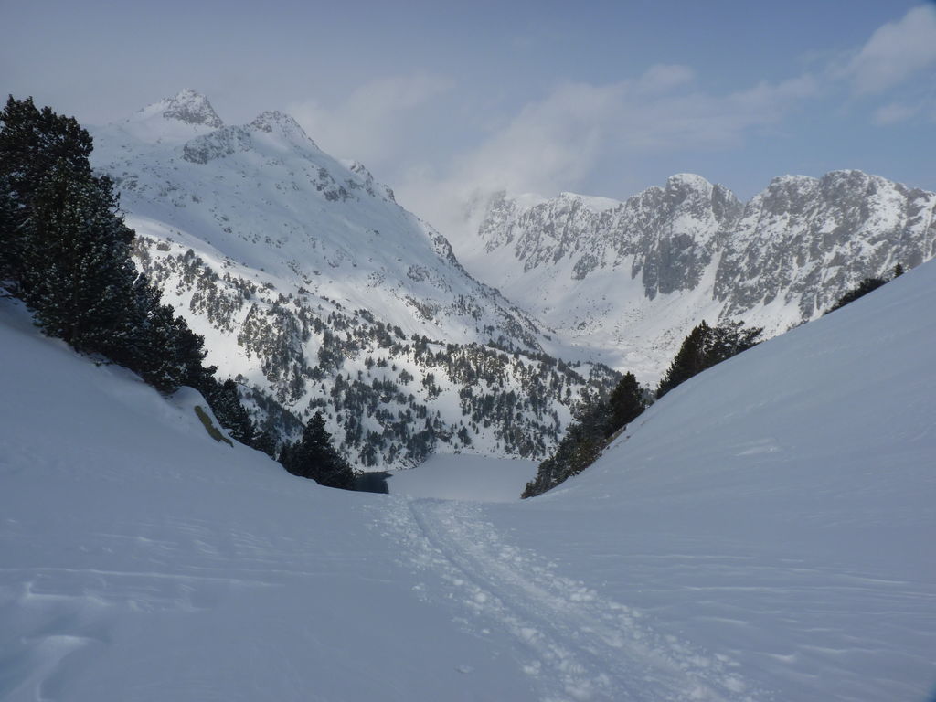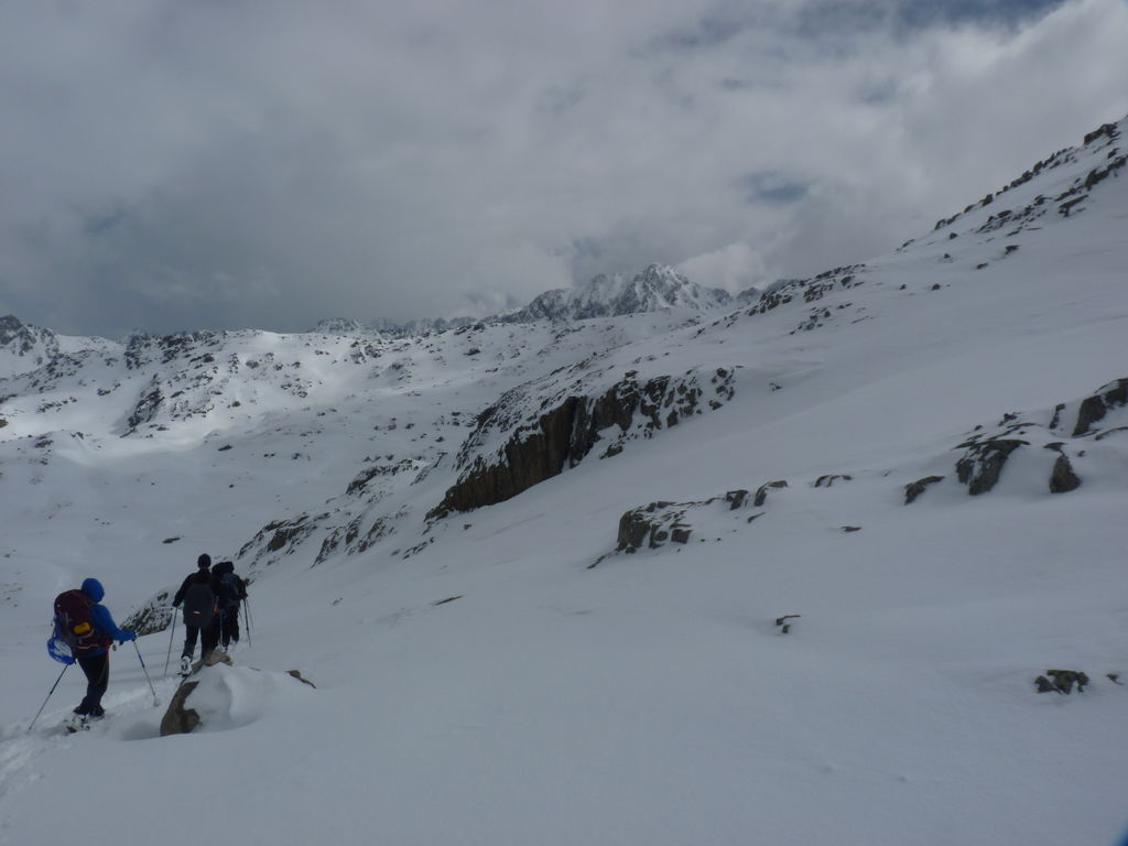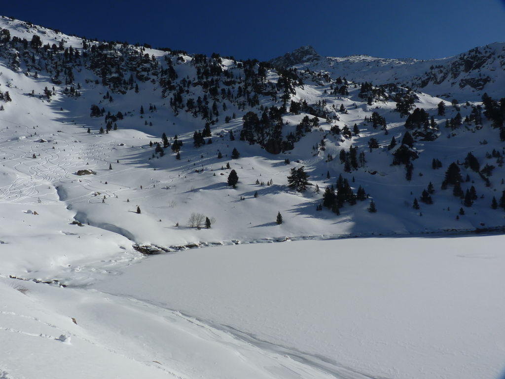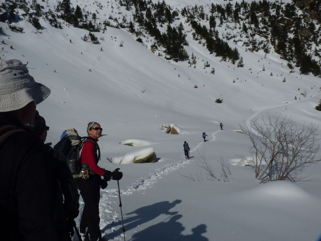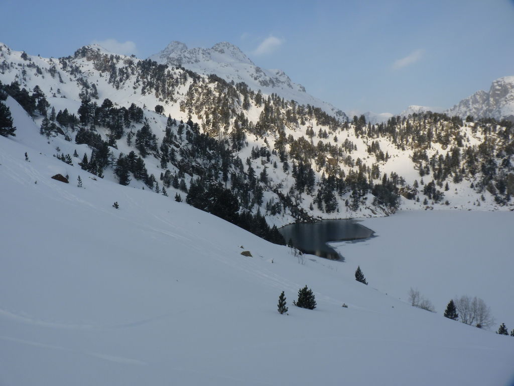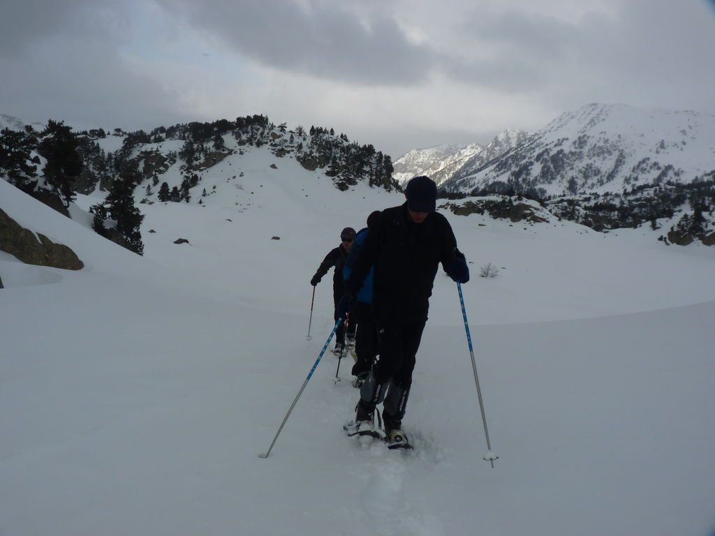 Pour se rendre au refuge de Ventosa i Calvell (2220m) via le Coret d’Oelhacrestada (2468m), ce n’est pas moins de huit lacs que nous rallierons un à un. Traverser ces « Estany », figés par la glace et recouverts d’un blanc manteau, procure des sensations uniques et inoubliables. Soirée dans un cadre grandiose…