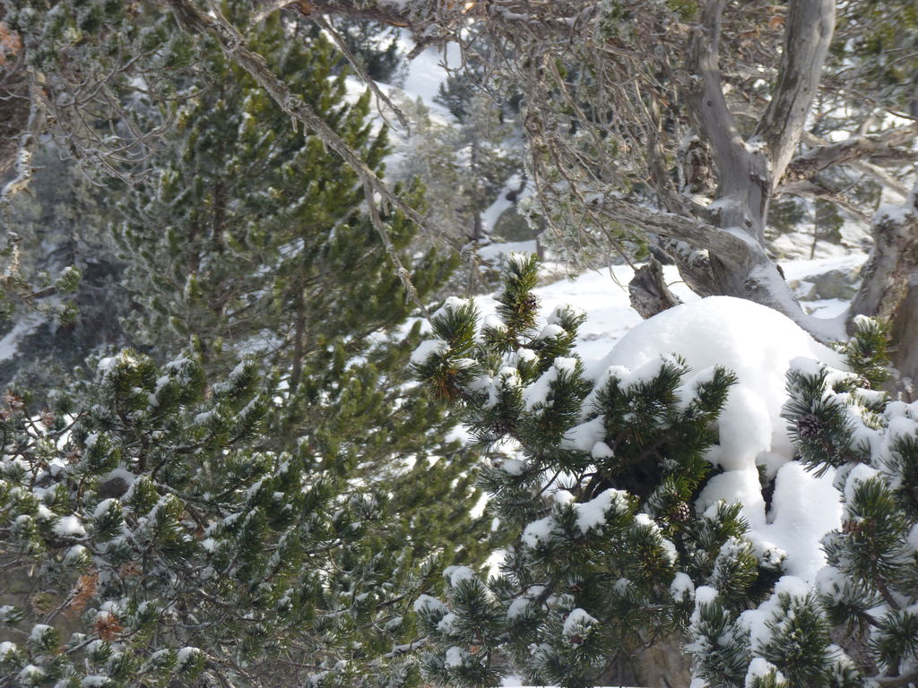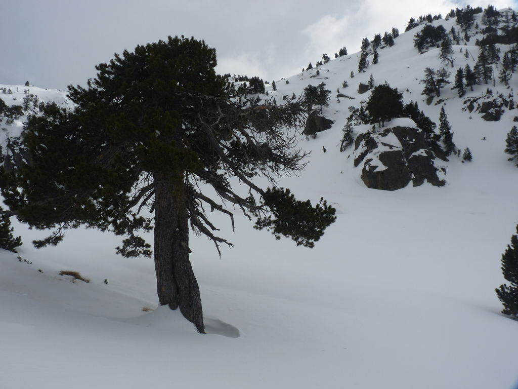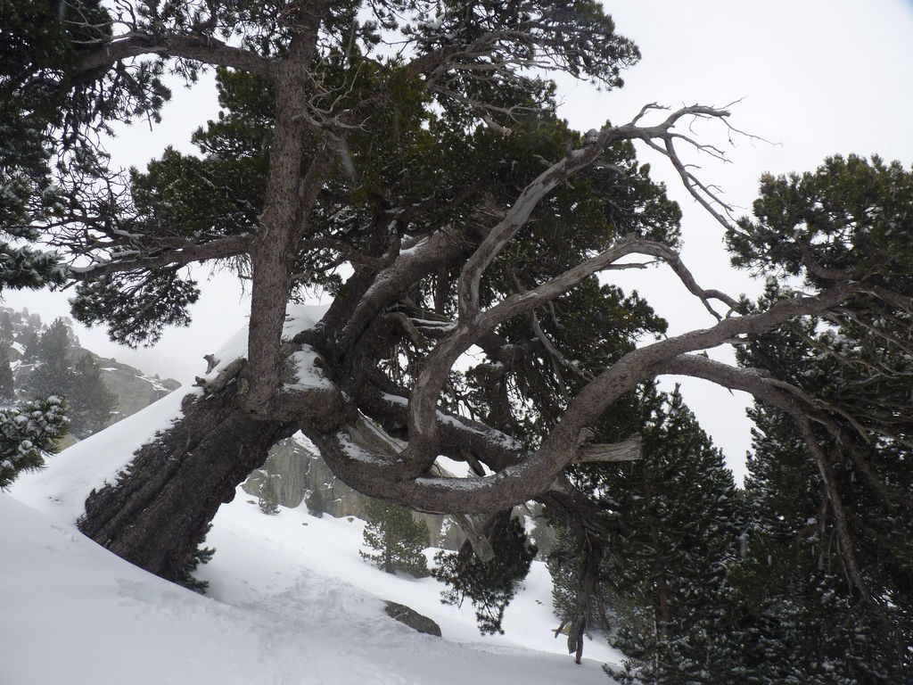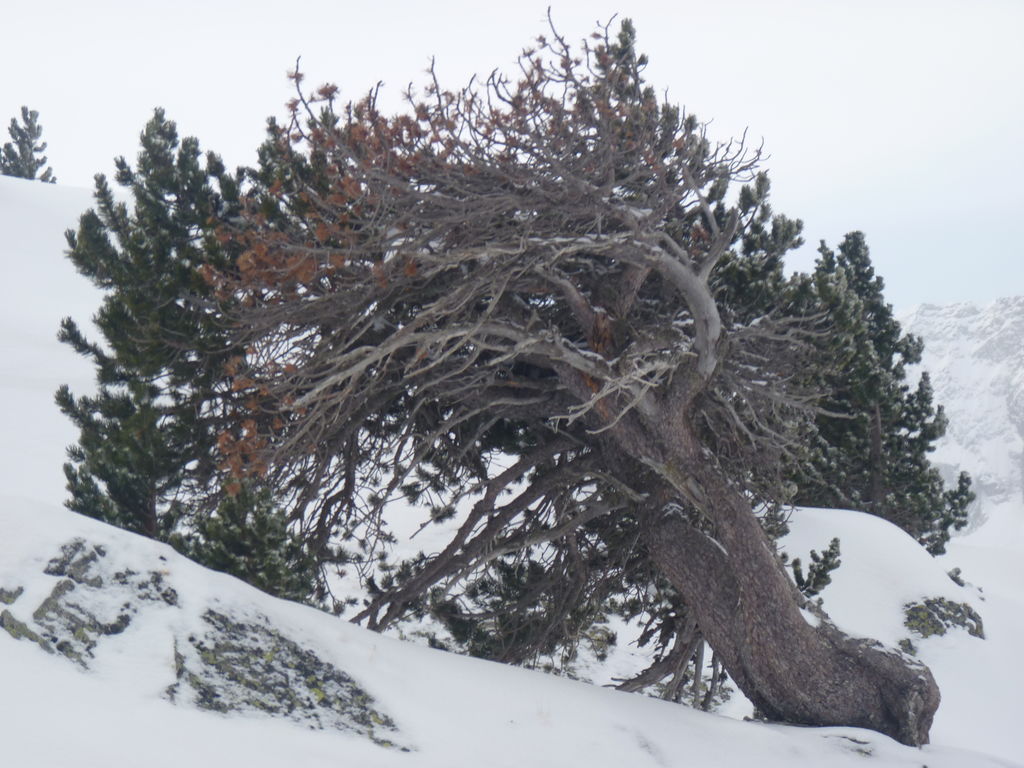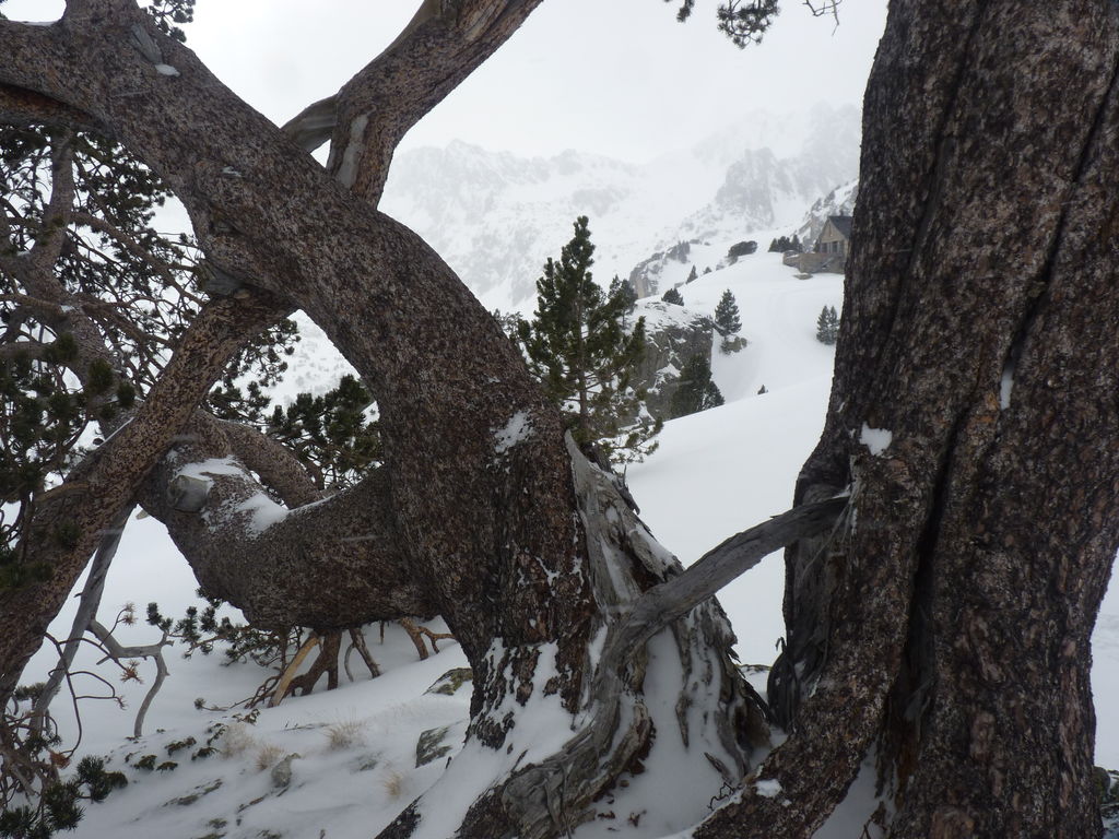 Le temps n’étant pas au beau fixe, nous préférons arriver au refuge de bonne heure et Philippe, notre accompagnateur, propose aux plus courageux d’entre nous de ressortir pour aller voir un superbe pin à crochets plusieurs fois centenaire.