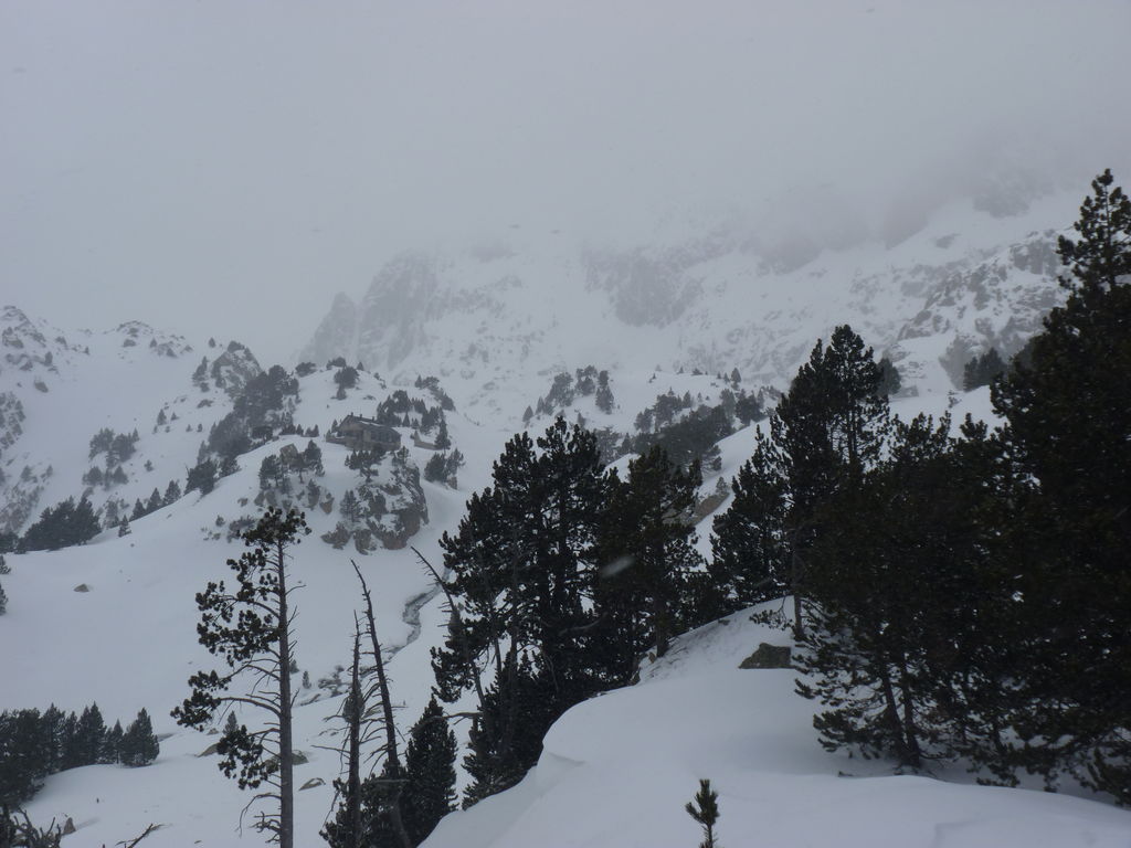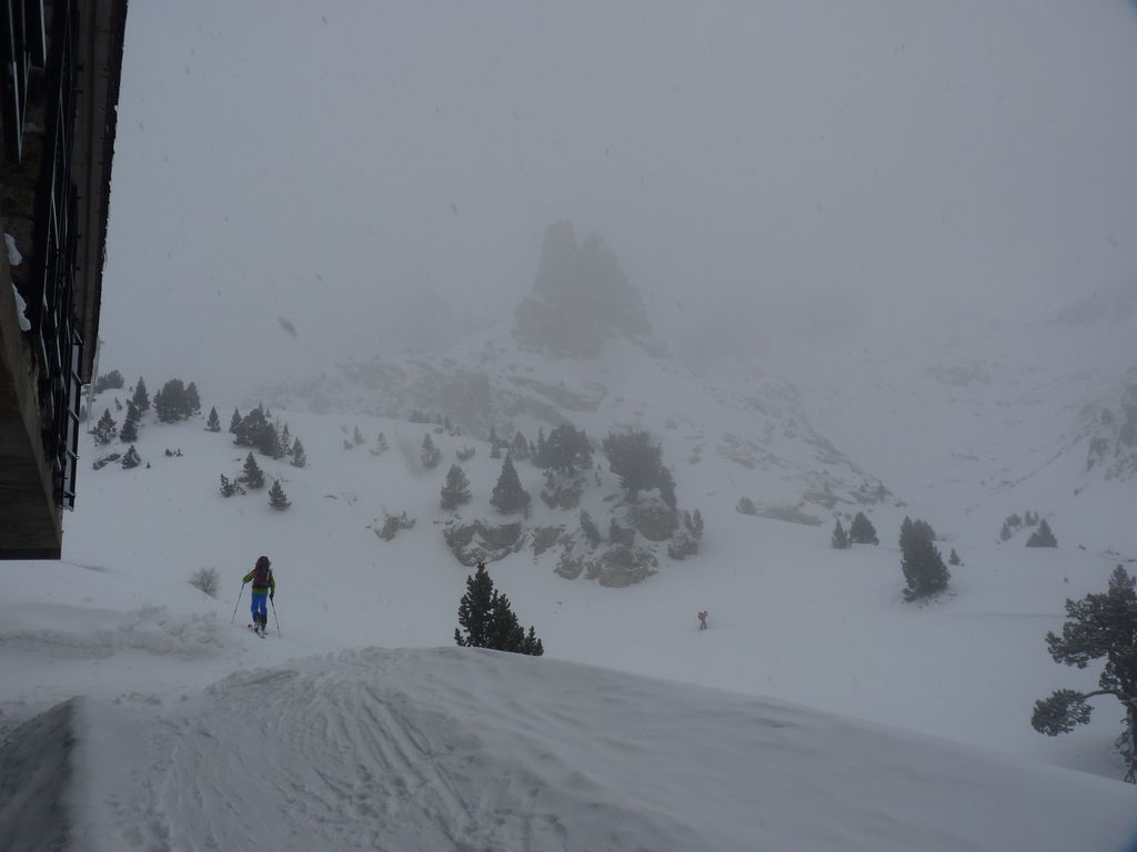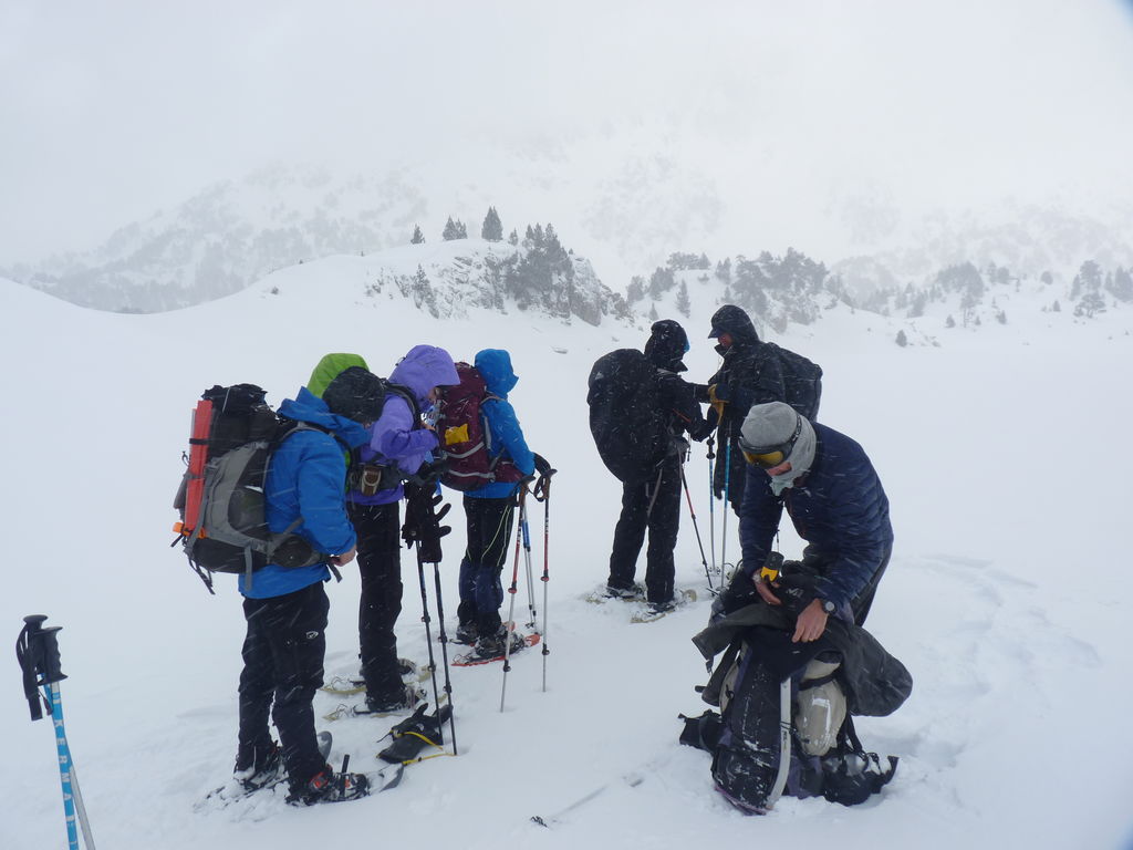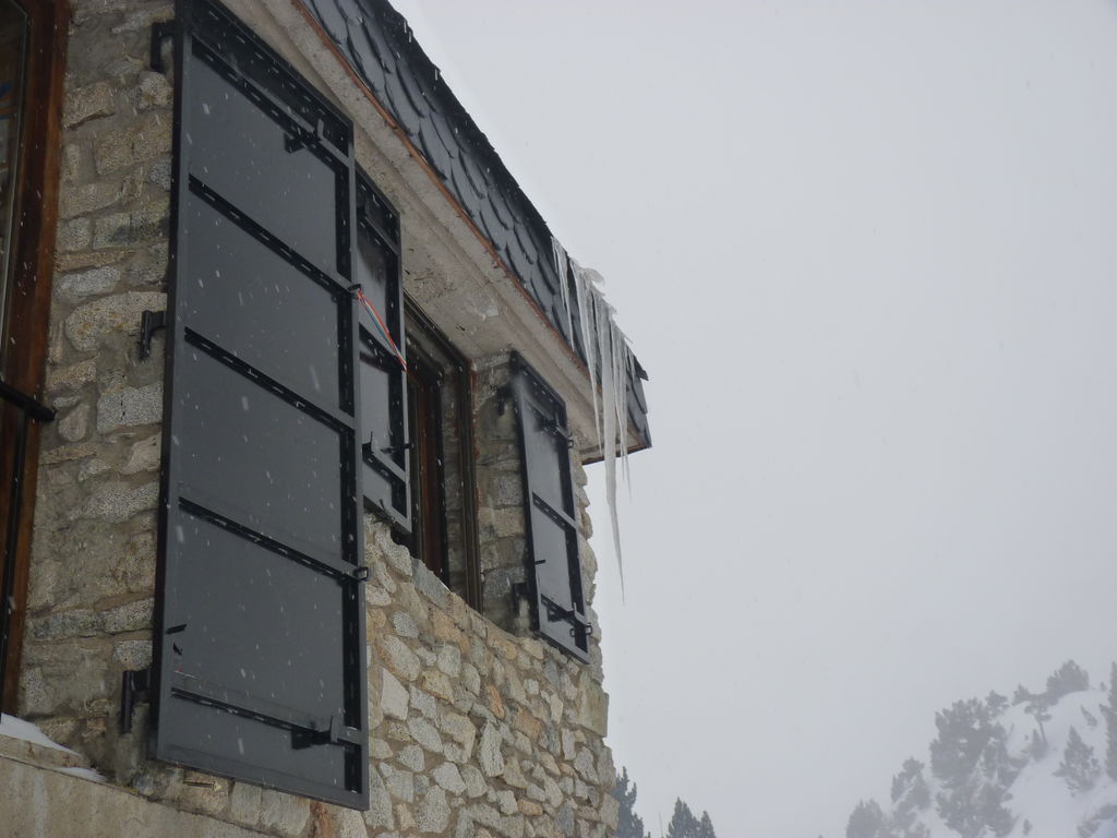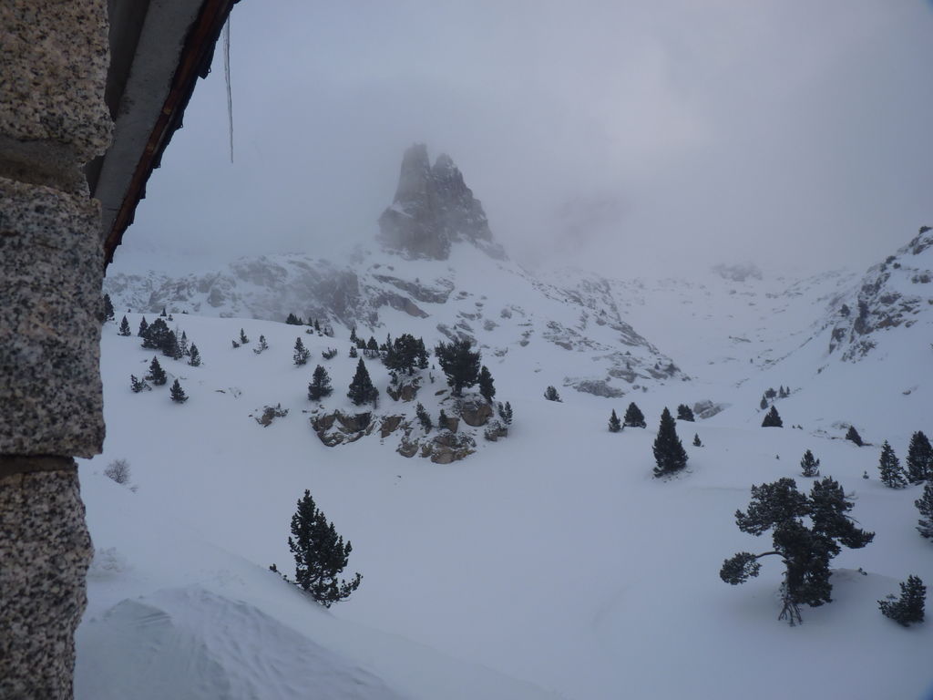Que de neige pendant cette quatrième journée! Pressés par la mauvais temps nous arrivons de bonne heure pour profiter de la chaleur, de la convivialité du refuge d’Amitges et de ses douches chaudes.
