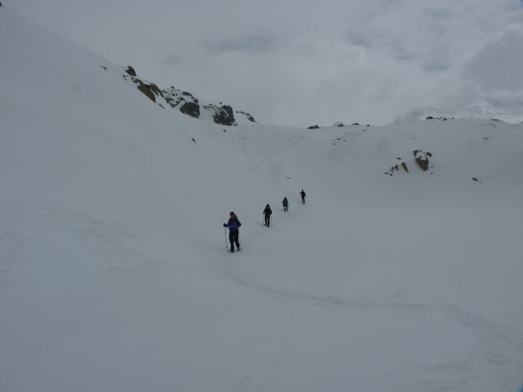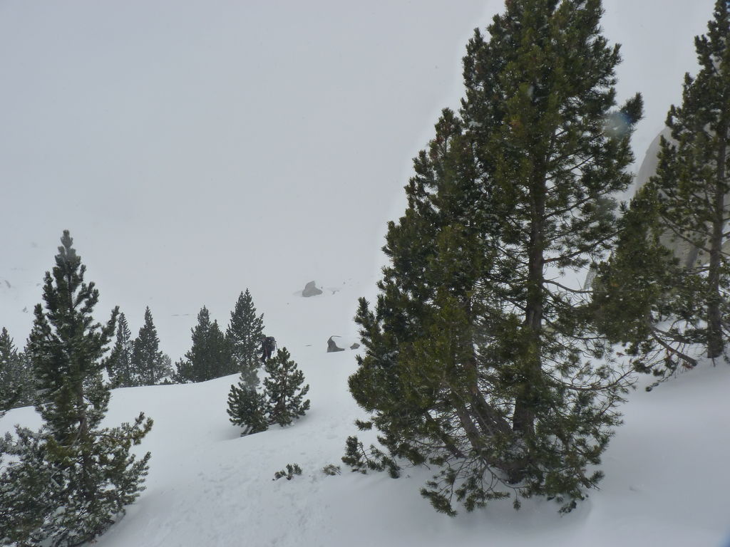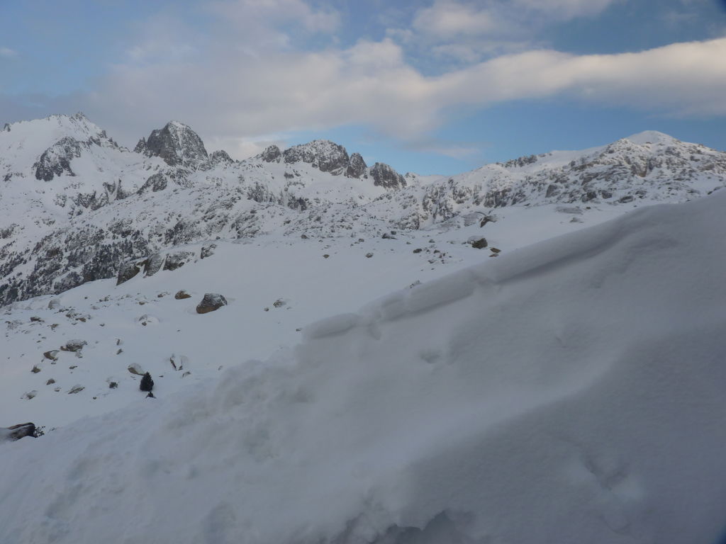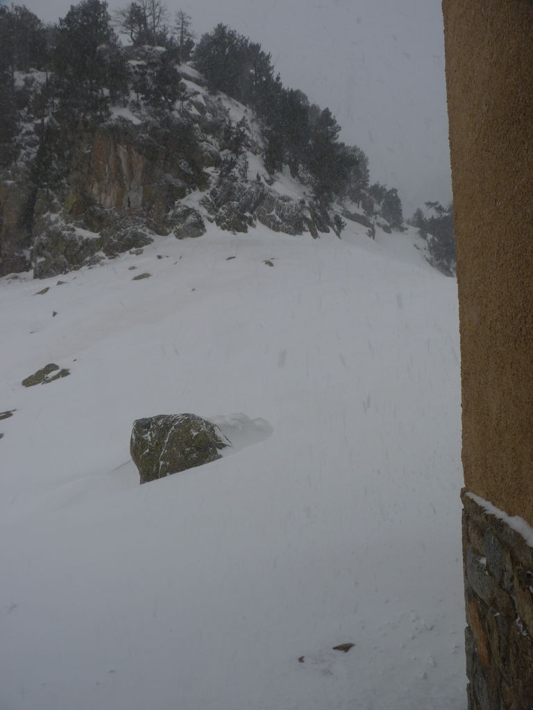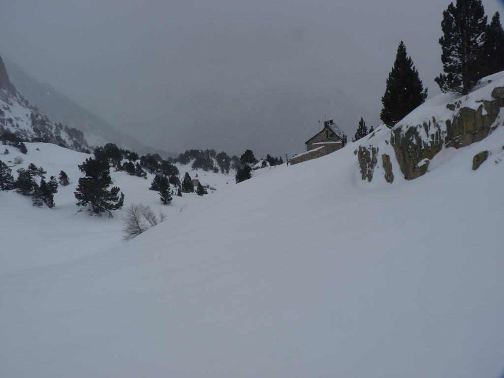 Que de neige pendant cette quatrième journée! Pressés par la mauvais temps nous arrivons de bonne heure pour profiter de la chaleur, de la convivialité du refuge d’Amitges et de ses douches chaudes.