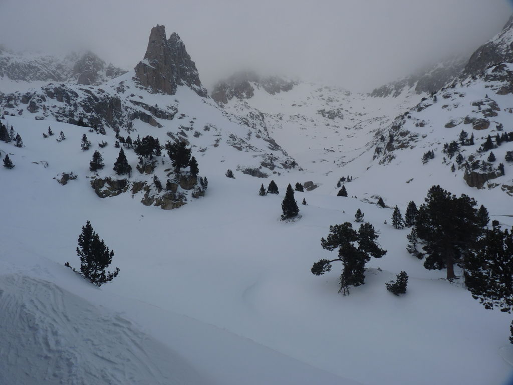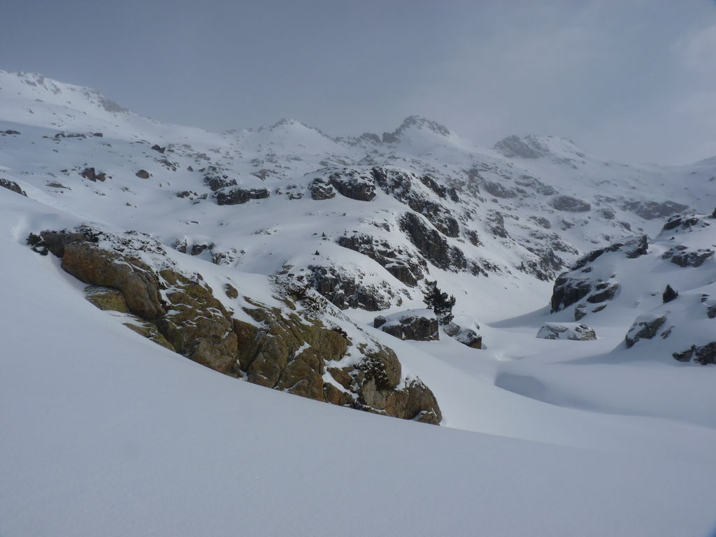 Le temps se découvre un peu et nous ressortons pour la désormais traditionnelle boucle de fin d’après midi qui nous permet de contempler l’aiguille d’Amitges et les deux Encantats de l’autre côté de la vallée.