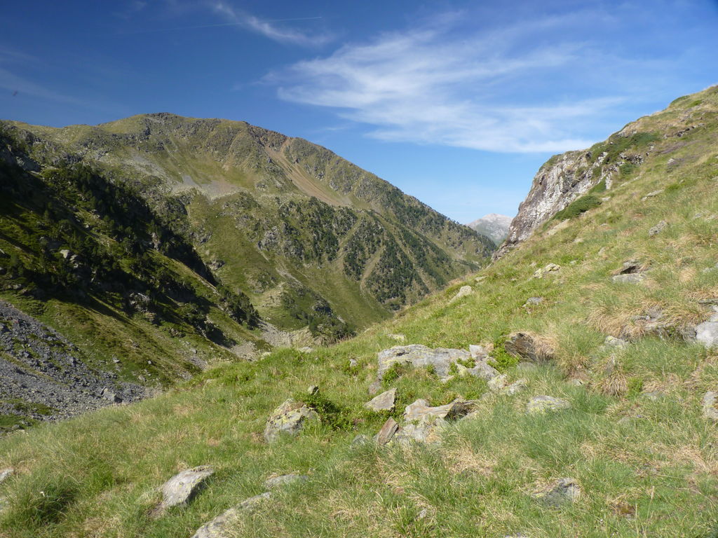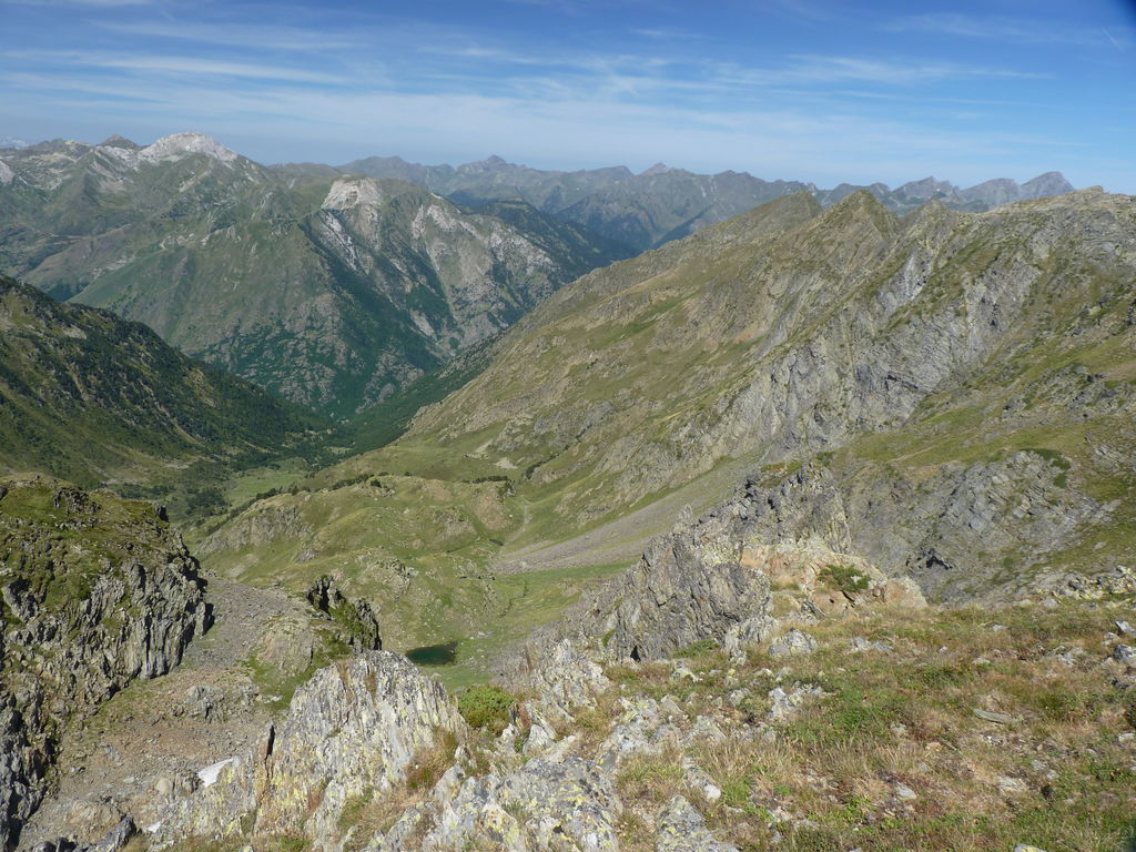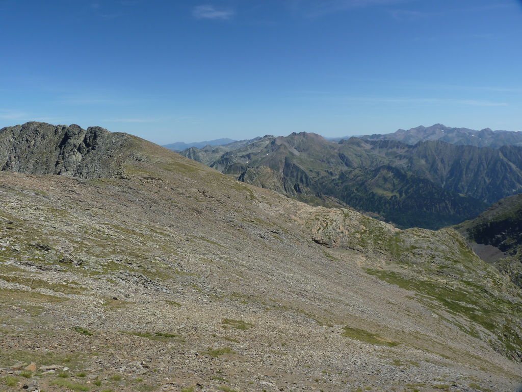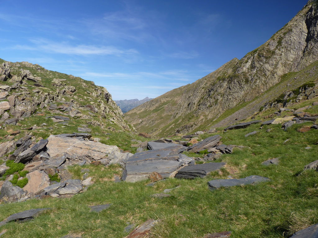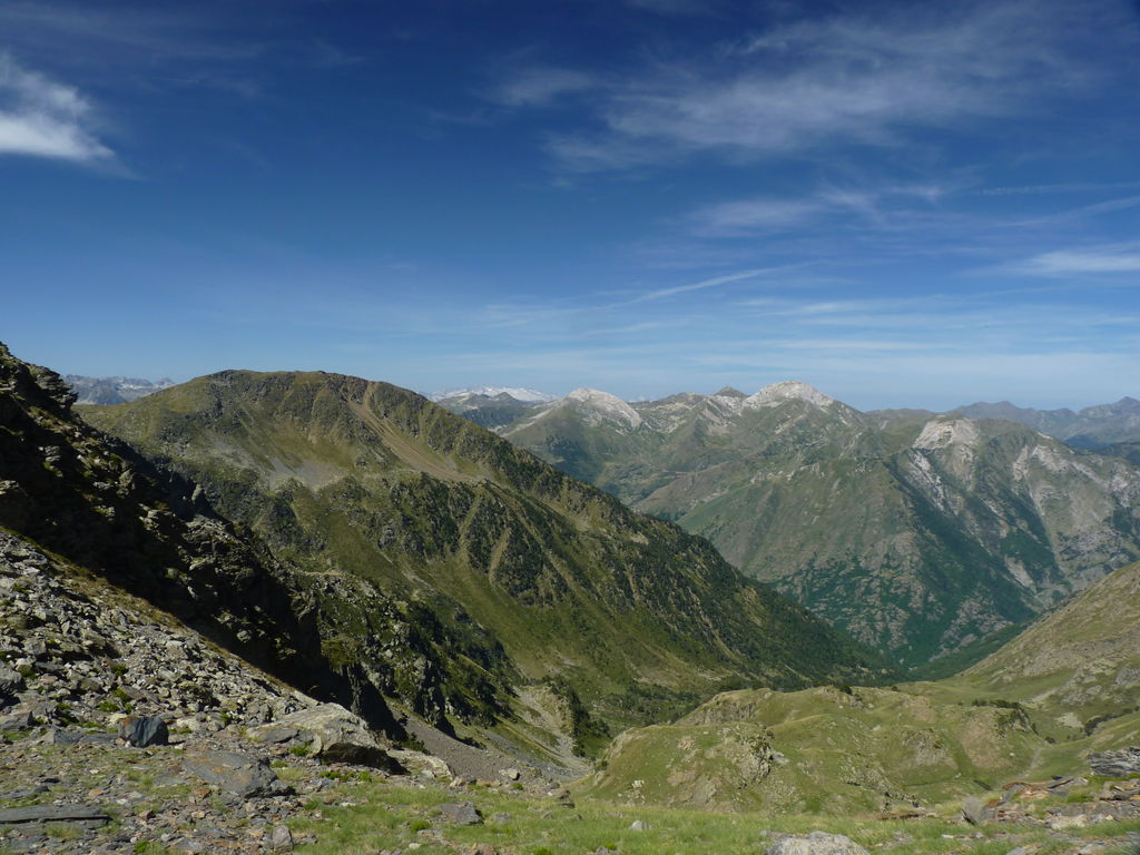 [en] August 10th, 2015. Pass del Clot de Montero : view over Moredo valley and mount Rouch in the background.