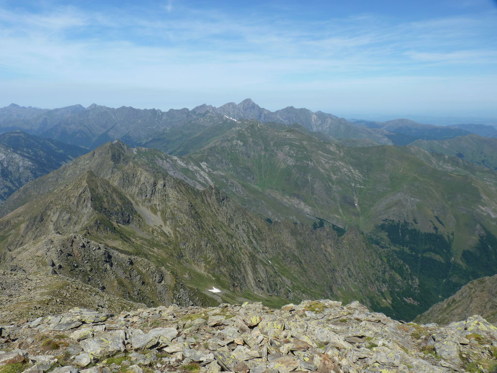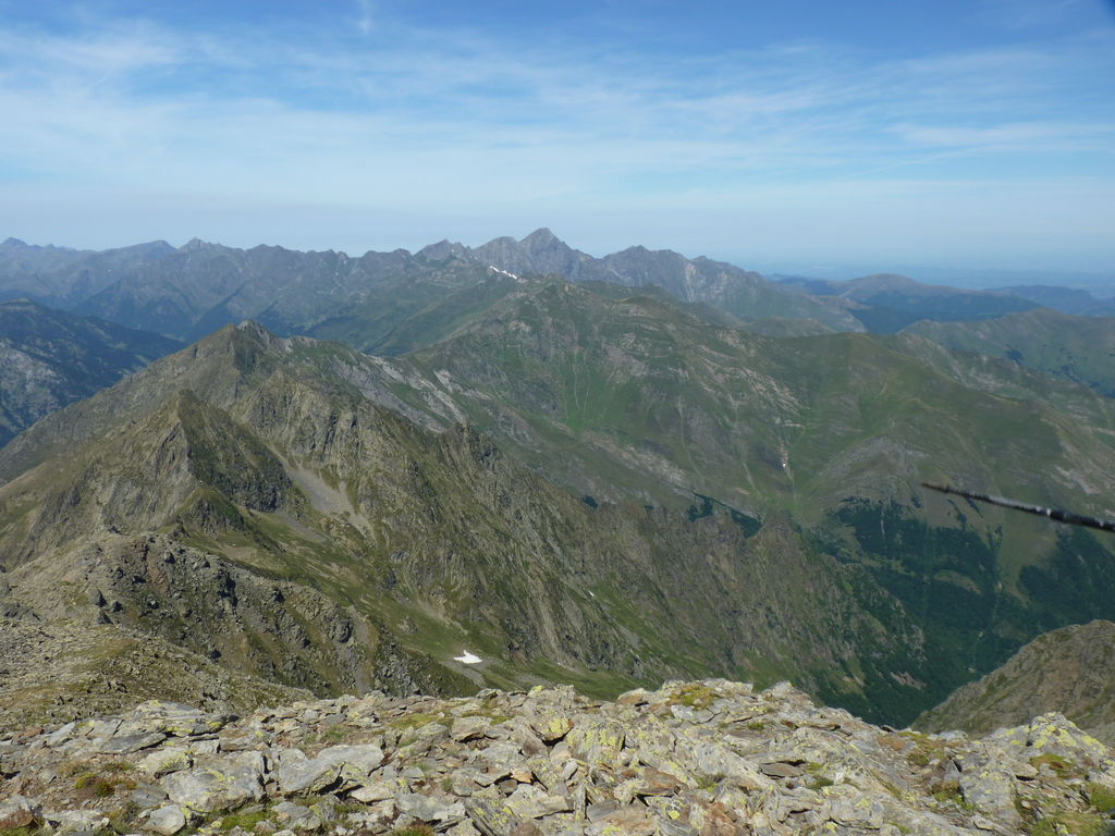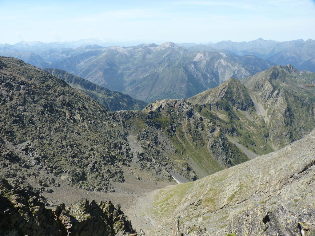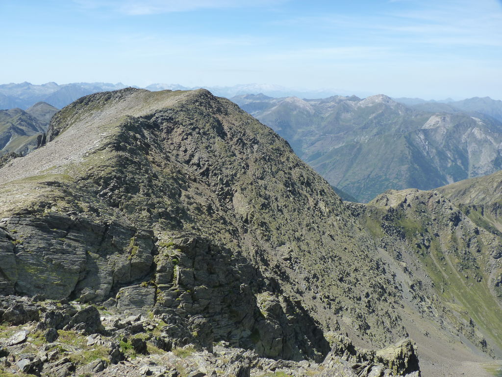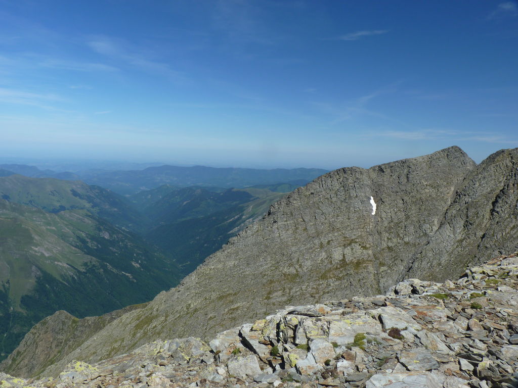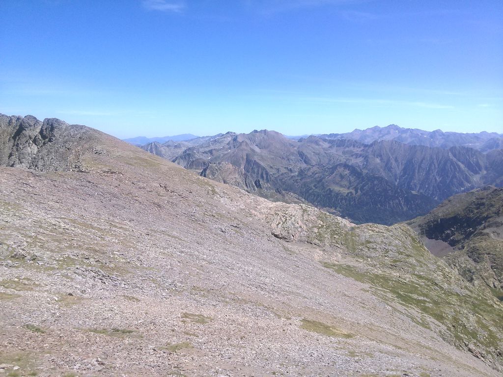 [en] August 10th, 2015. Pass del Clot de Montero : view over Moredo valley and mount Rouch in the background.