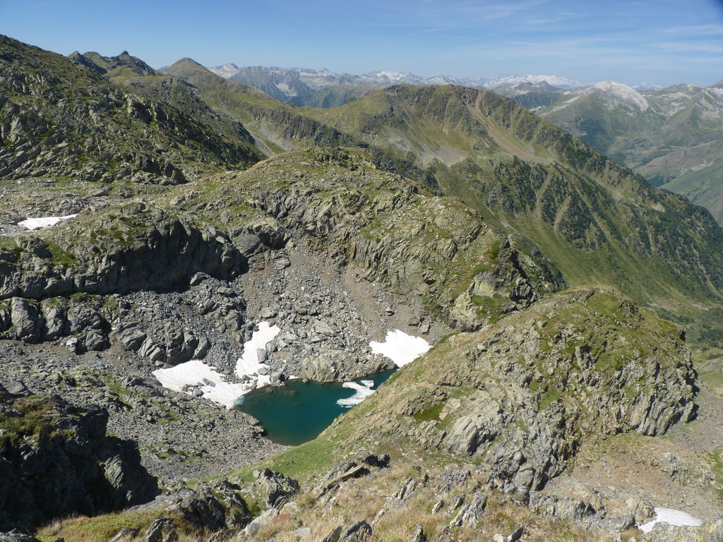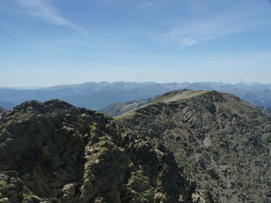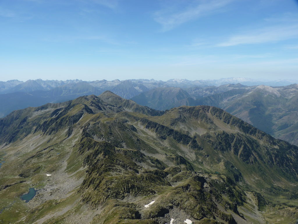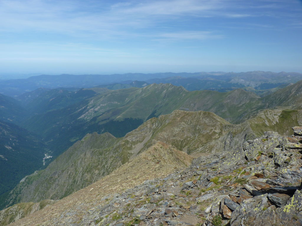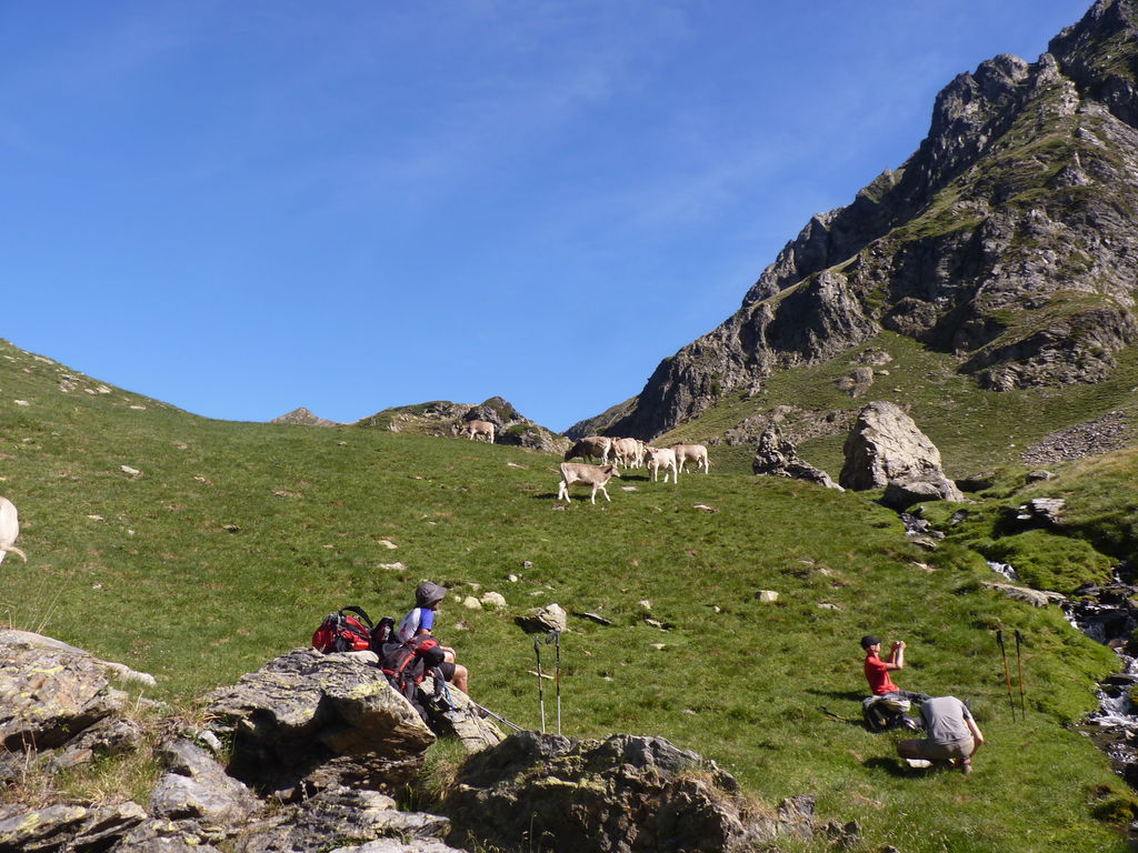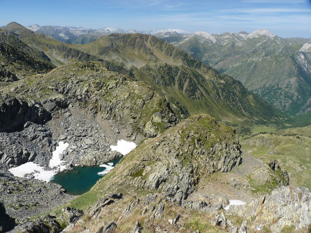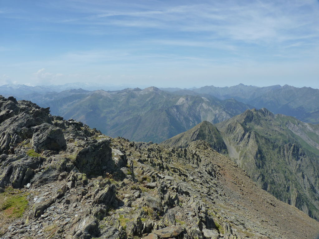 Toujours guidés par Bertrand, Nicolas et moi entreprenons la facile ascension du Tuc de Certascan où nous attend un paysage somptueux alors que le reste de l’équipe, un peu éprouvé par la longue journée de la veille se repose en gardant nos sacs.