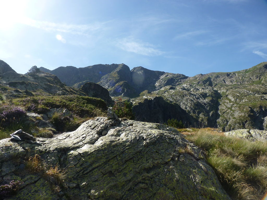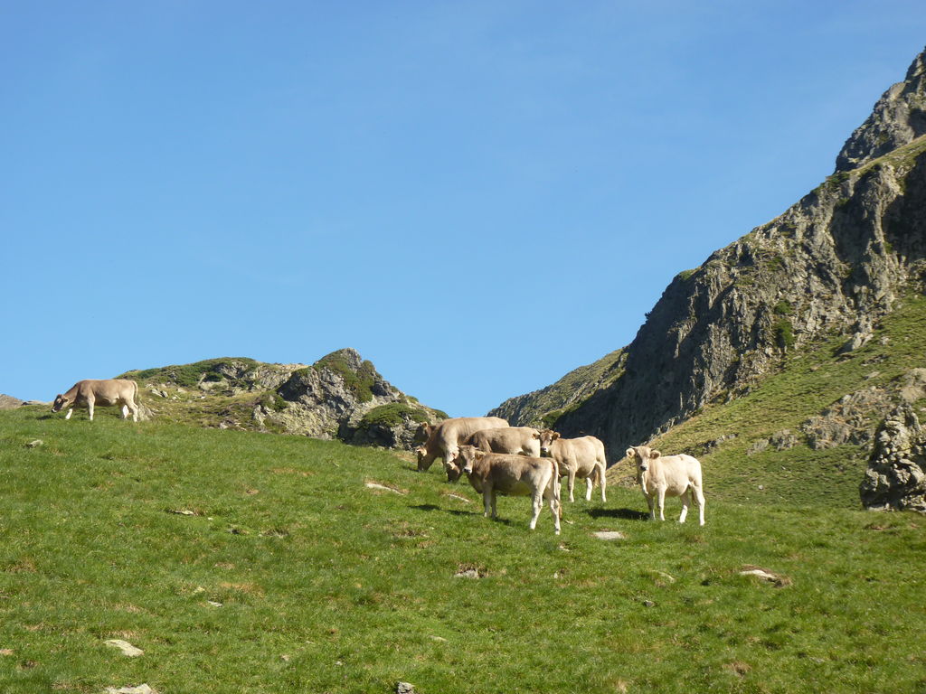 Un relatif beau temps suit l’orage et nous continuons de suivre le sentier de la Porta del Cel jusqu’au col qui marque la frontière avec la France puis jusqu’à l’étang de Montestaure au bord duquel nous déjeunons.