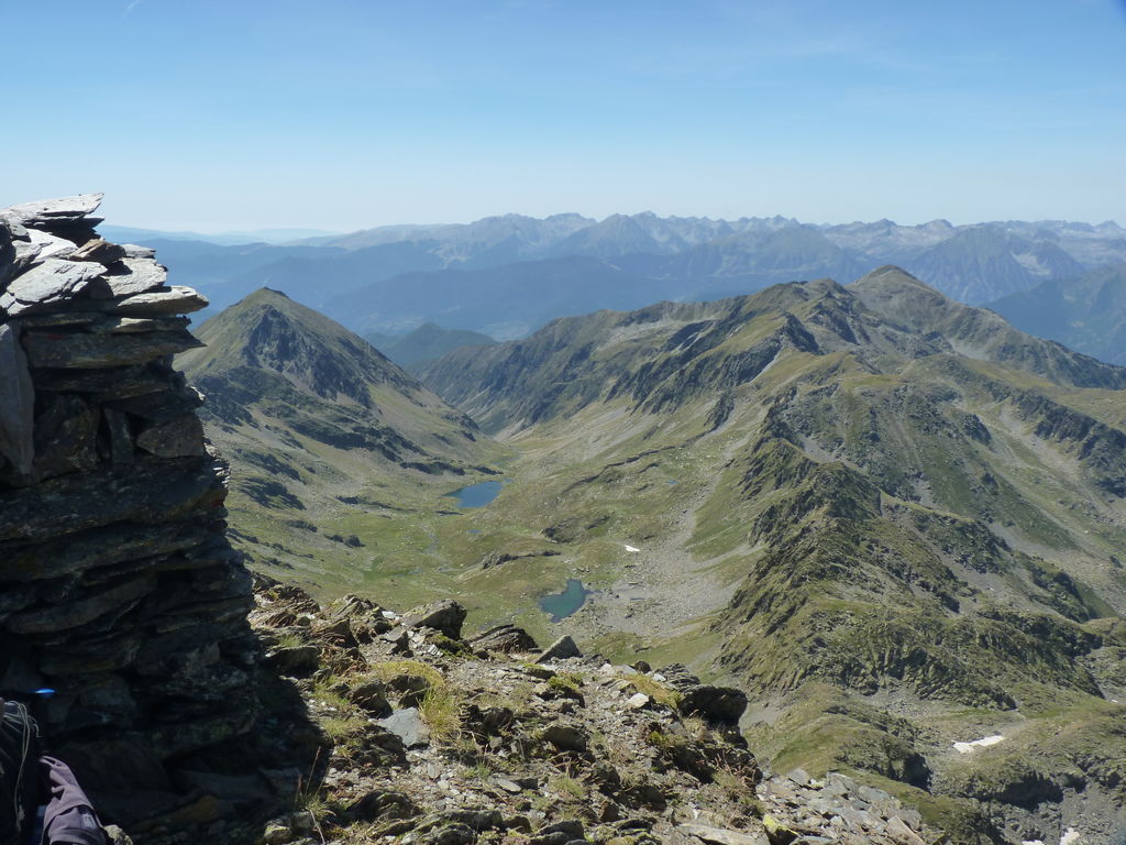 [fr] 10 août 2015. Col del Clot de Moredo : vue sur la vallée de Moredo et le mont Rouch en arrière plan.