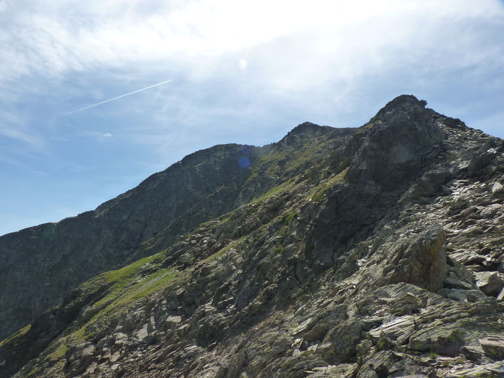 Nous débouchons alors sur une ligne de crête assez plate qui nous mène au mont Rouch « espagnol ». Surprise : nous croisons deux brebis à quelques mètres du sommet!