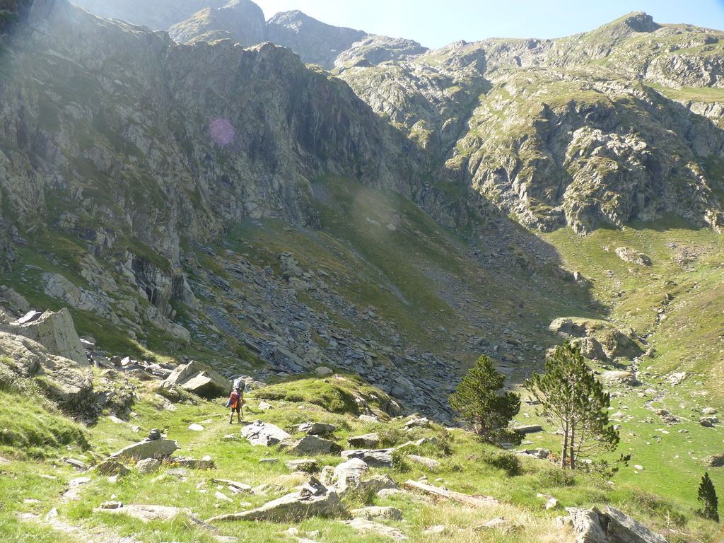 Belle montée dans la vallée de Noarre d’où nous pouvons contempler à loisir la silhouette du mont Rouch, lieu de nos exploits de la veille.