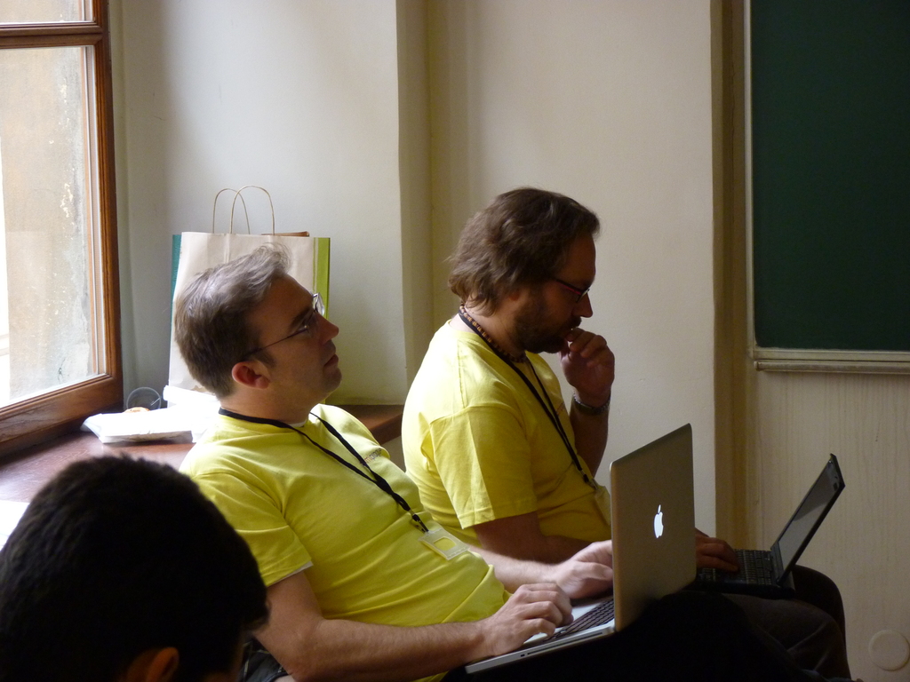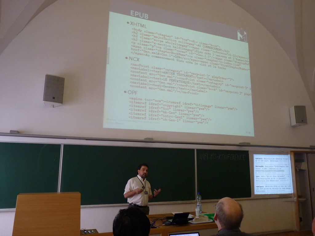 Since my presentation is just standard HTML, I had been brave enough to use the shared computer. Unfortunately, the presentation loads 74 Megs of background pictures and that was a little bit high for the shared computer that took several seconds to change pages (note to self: next time, use your own laptop)!