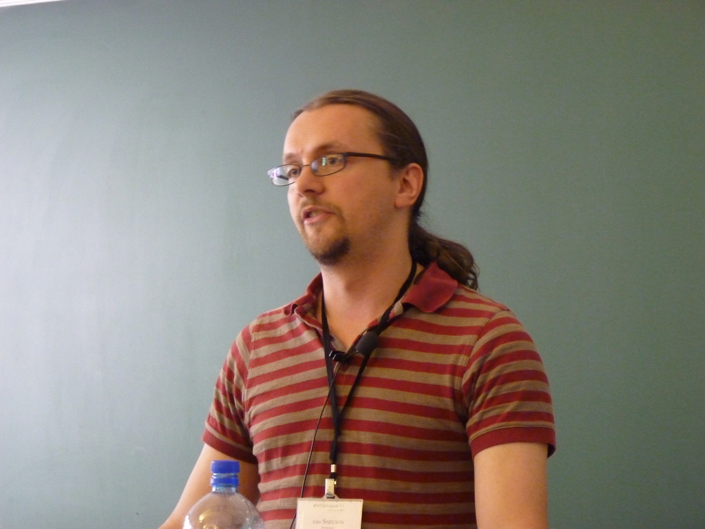 John Snelson (Declarative XQuery Rewrites for Profit or Pleasure)Je pensais ce mouvement inéluctable et ai été bien surpris de voir qu’il n’avait guère atteint les intervenants de XML Prague 2011 qui (à l’exception très notable de John Snelson) continuaient à utiliser powerpoint de manière très traditionnelle.