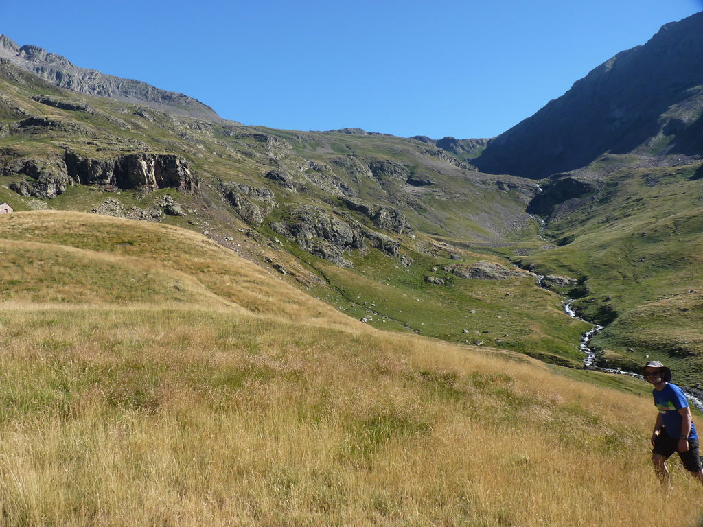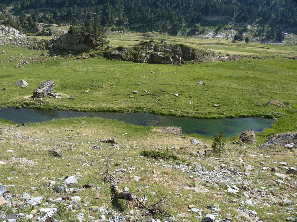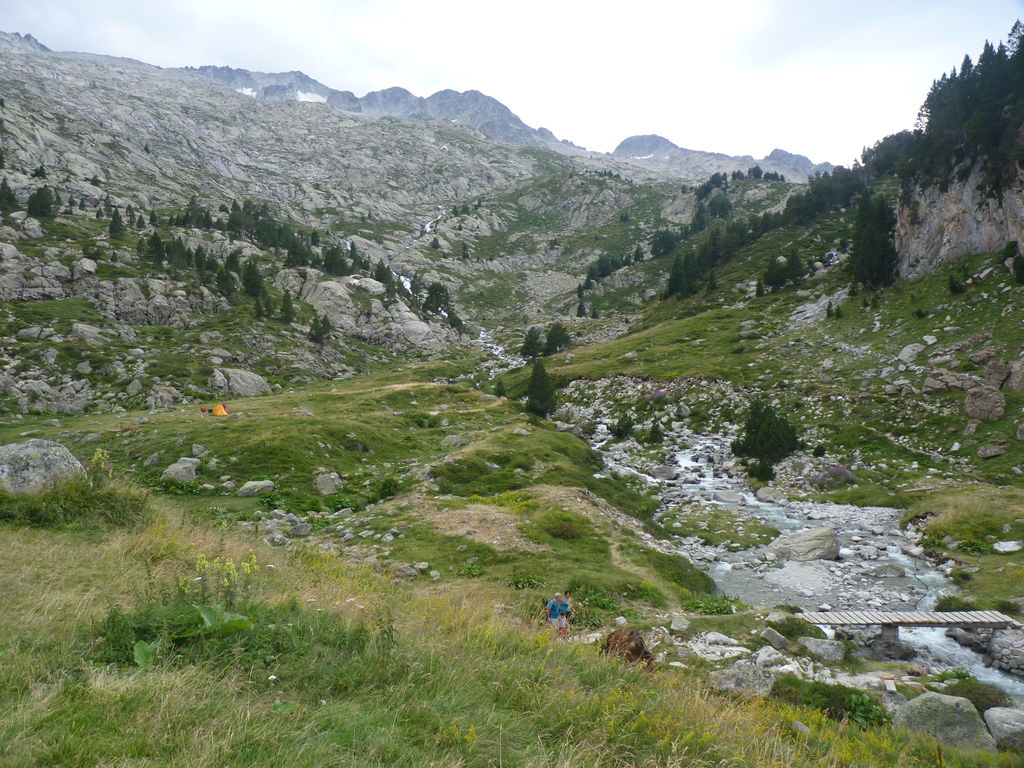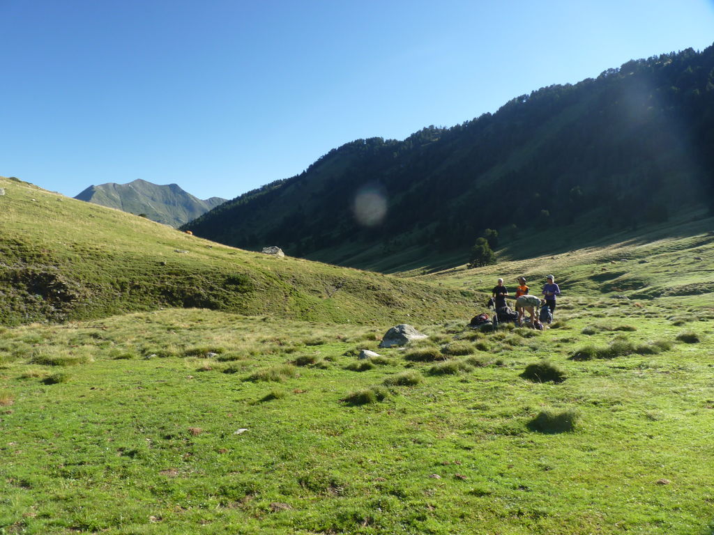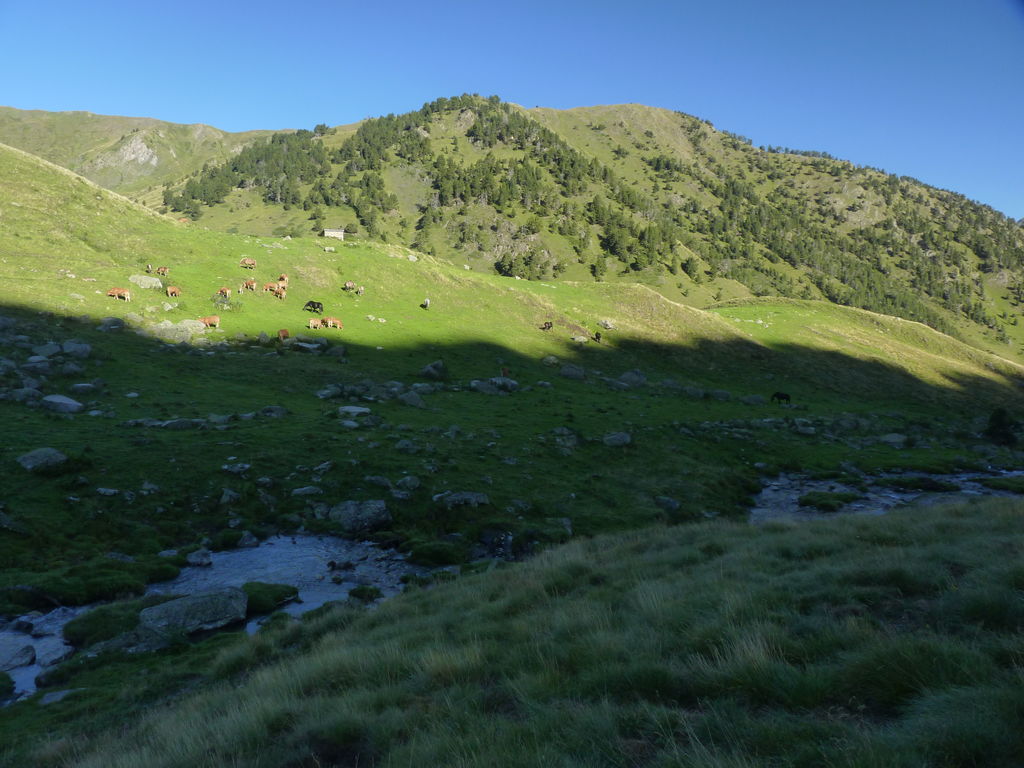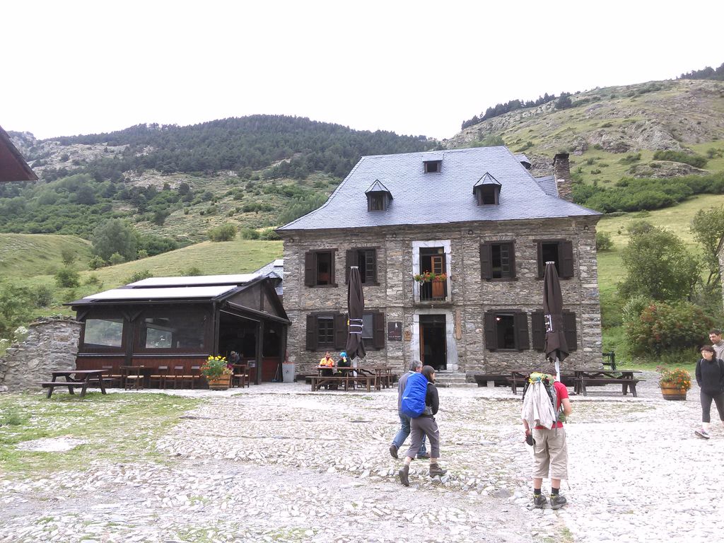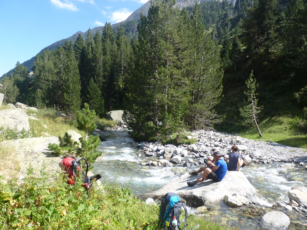 Commence alors une longue descente en partie hors sentier vers le refuge non gardé Enric Pujol à côté duquel nous faisons une pose et discutons avec des adaptes de la MUL puis jusqu’au refuge du camping de Graus.