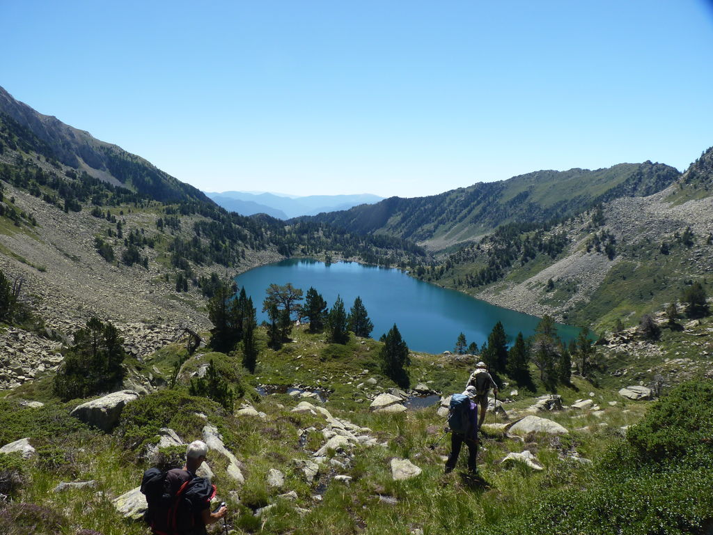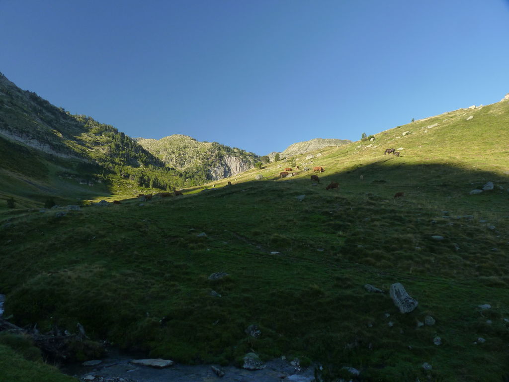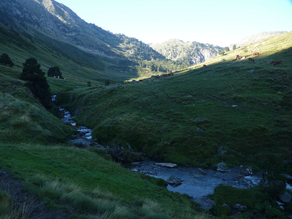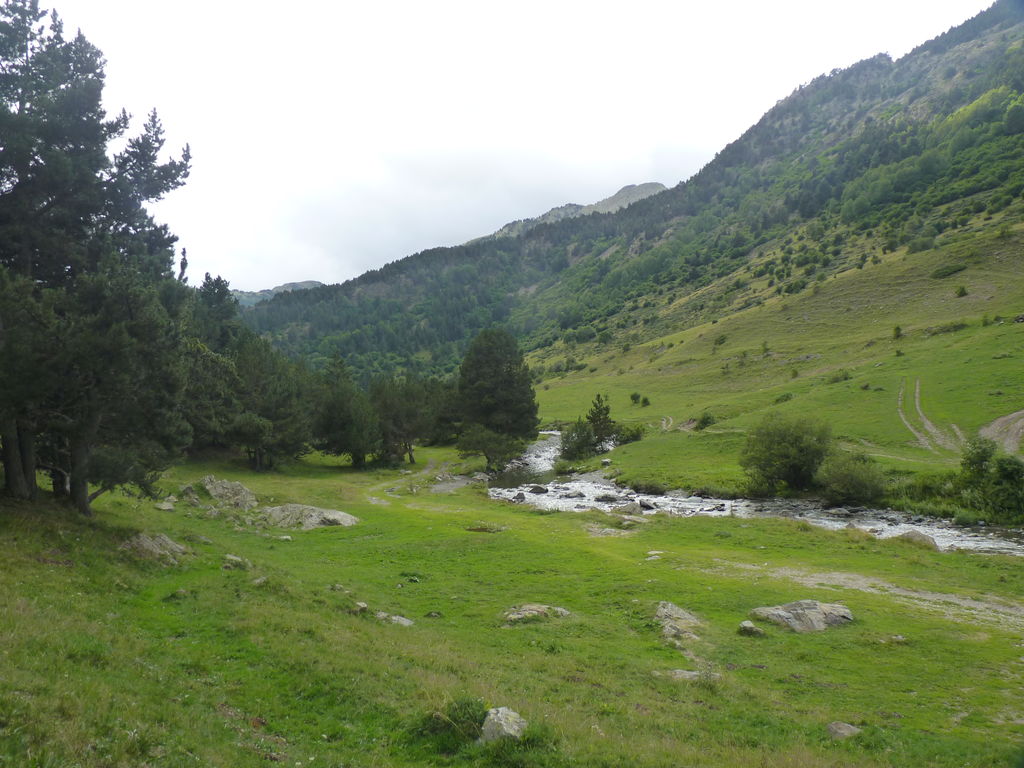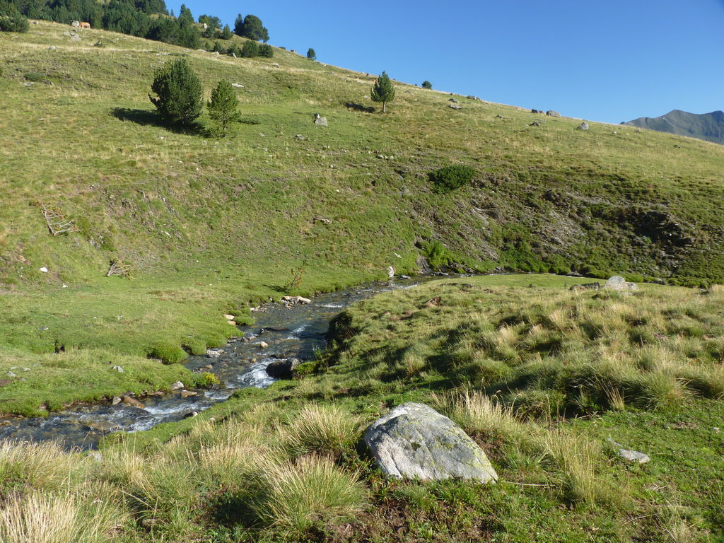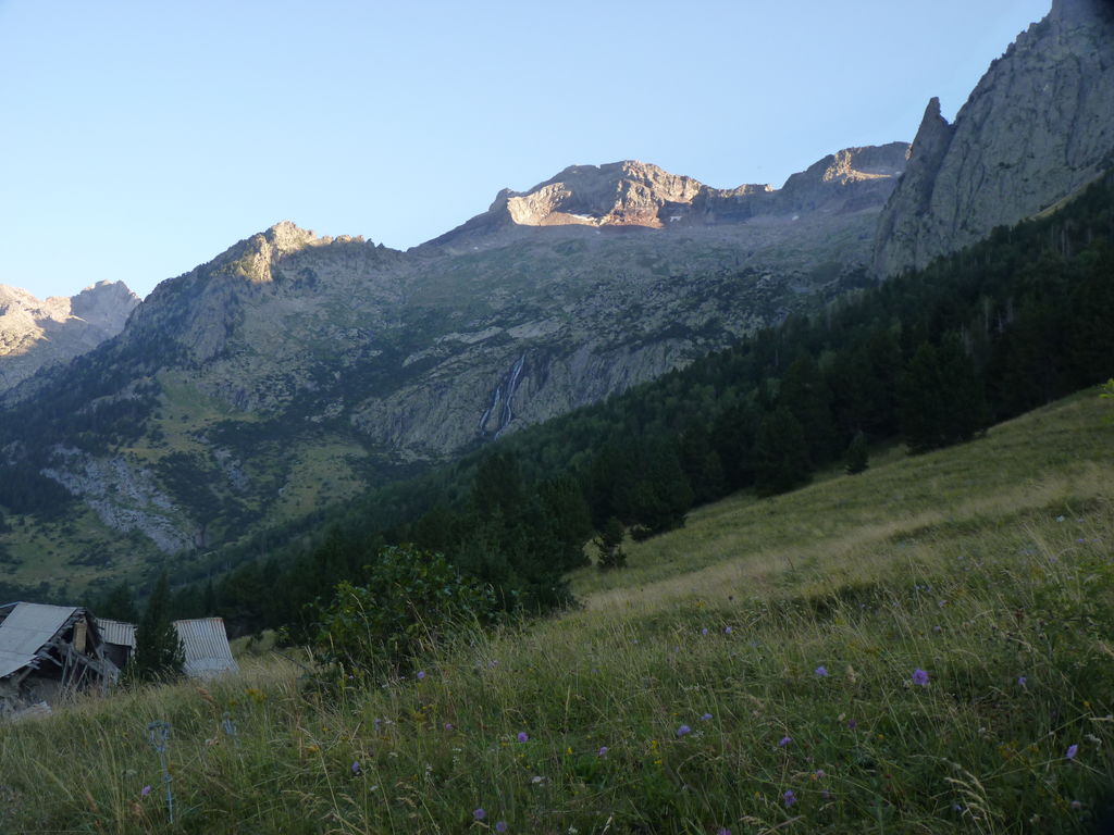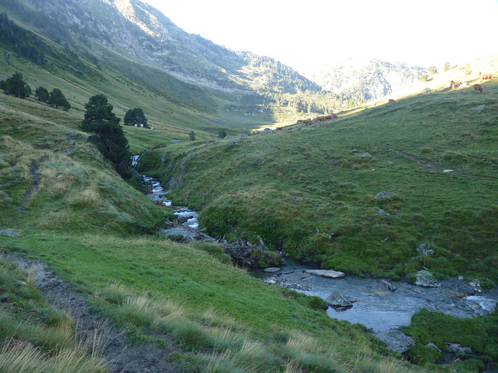 Commence alors une longue descente en partie hors sentier vers le refuge non gardé Enric Pujol à côté duquel nous faisons une pose et discutons avec des adaptes de la MUL puis jusqu’au refuge du camping de Graus.