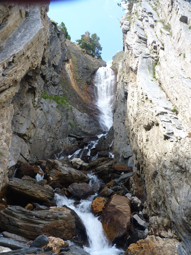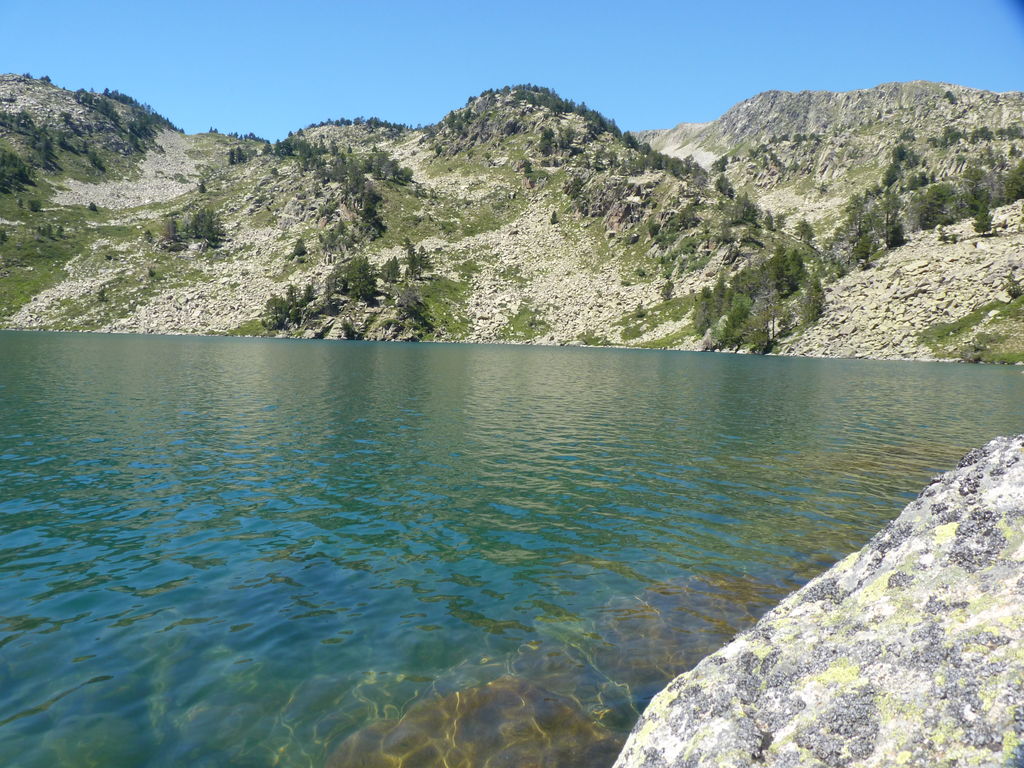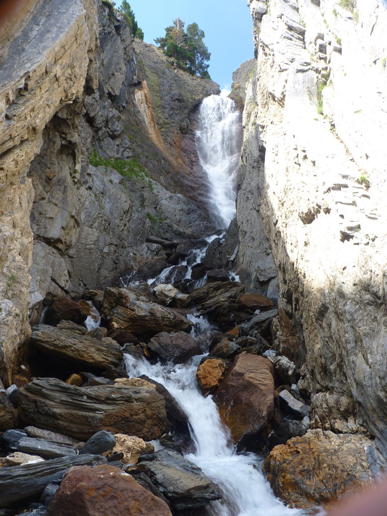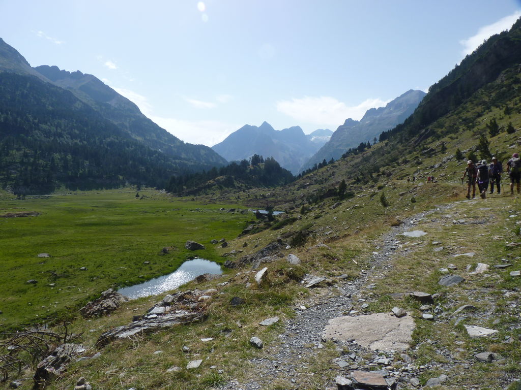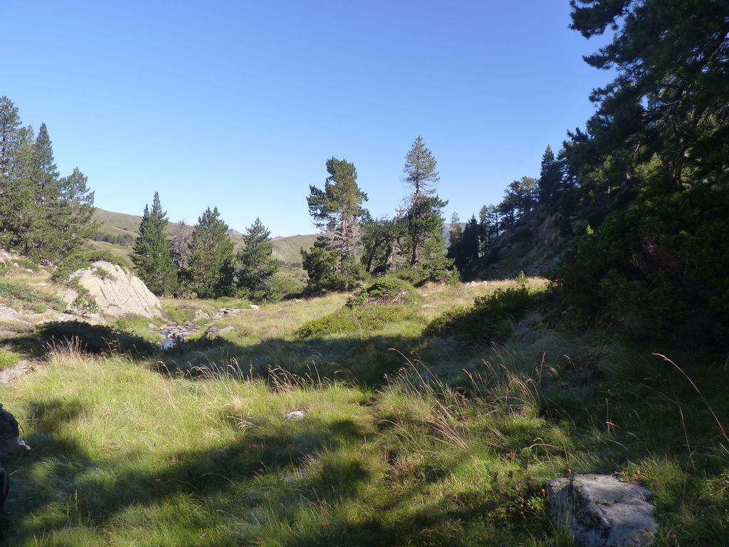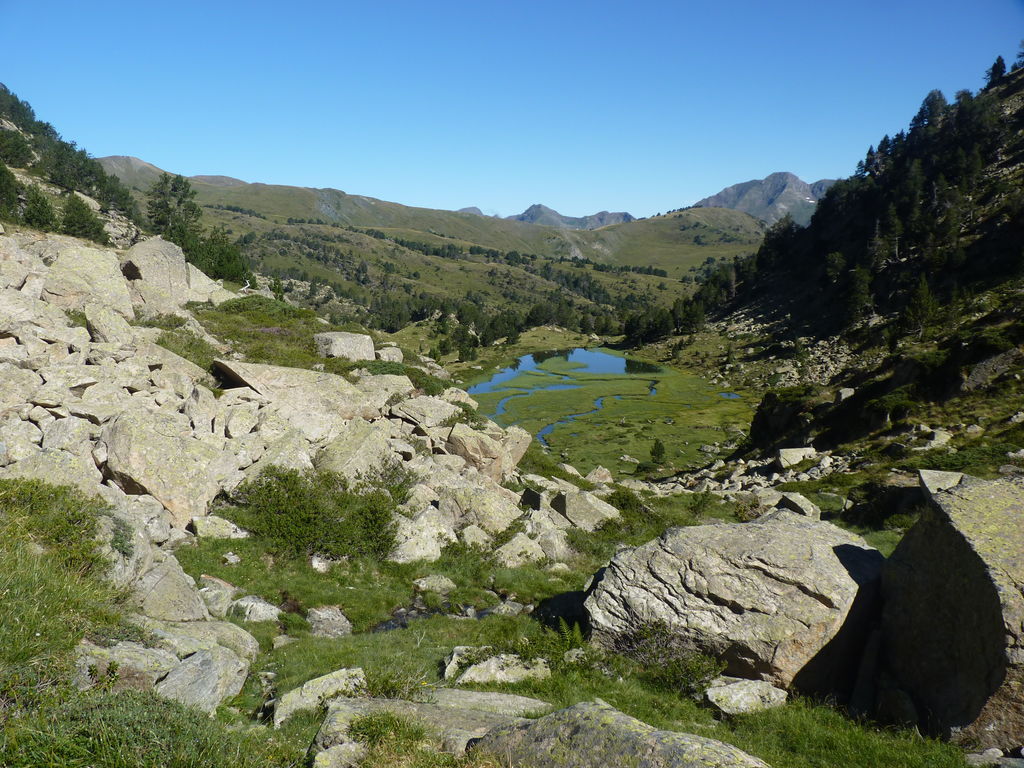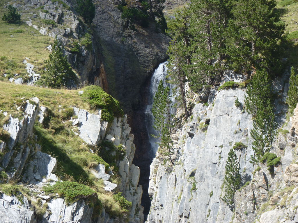 Commence alors une longue descente en partie hors sentier vers le refuge non gardé Enric Pujol à côté duquel nous faisons une pose et discutons avec des adaptes de la MUL puis jusqu’au refuge du camping de Graus.