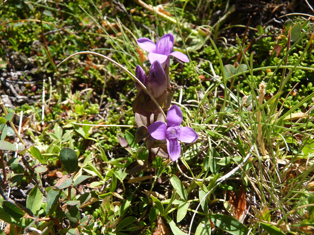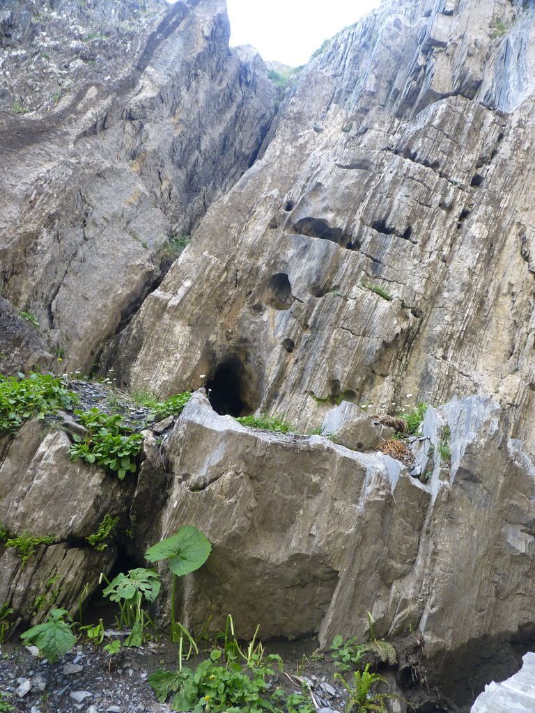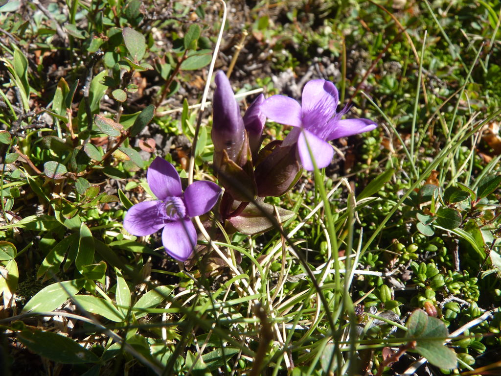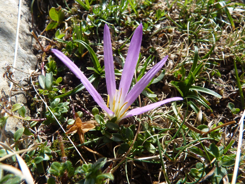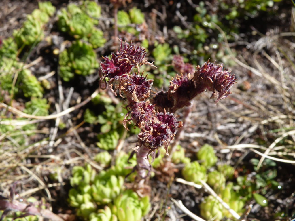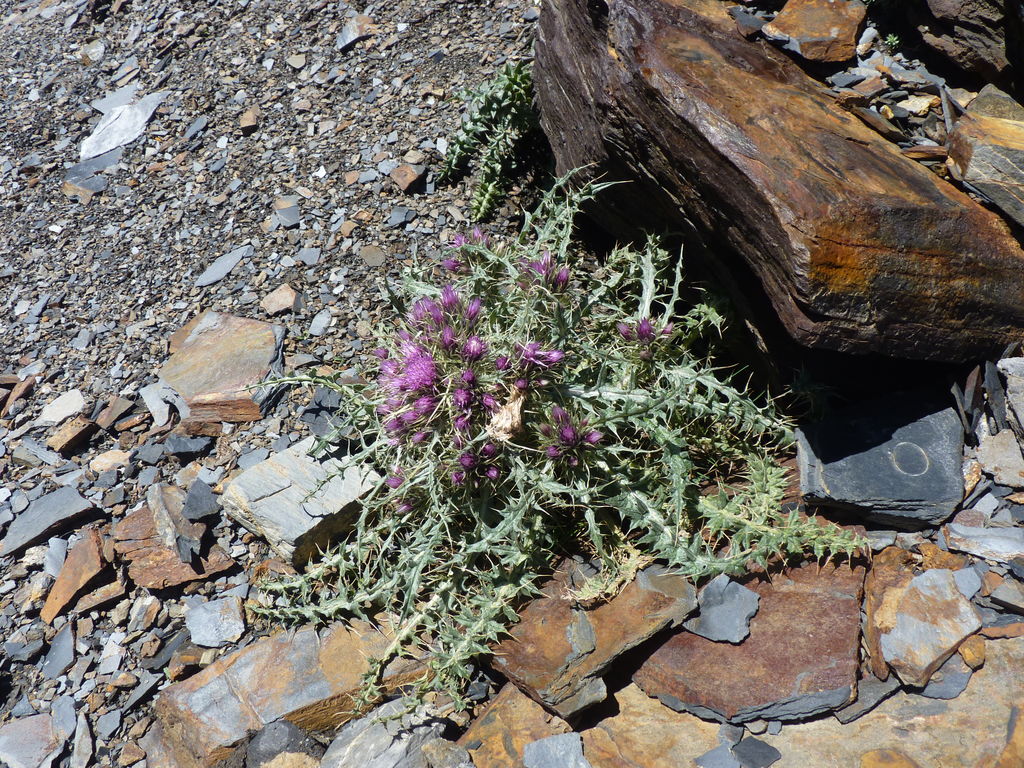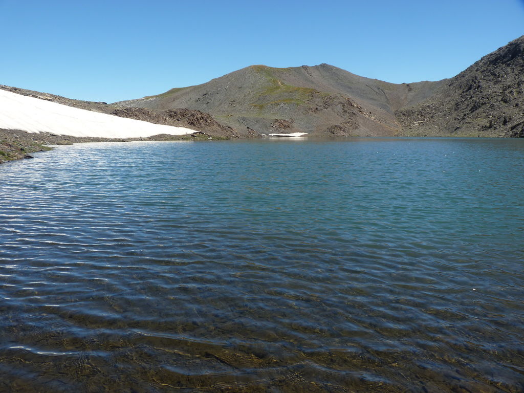 Vers 2400m d’altitude le paysage devient plus minéral et est dominé par les schistes noirs et rouges (suivant leur teneur en fer). Après un névé et un dernier lac l’ascension devient plus raide et nous devons attacher nos bâtons de marche à nos sacs à dos pour terminer la montée.