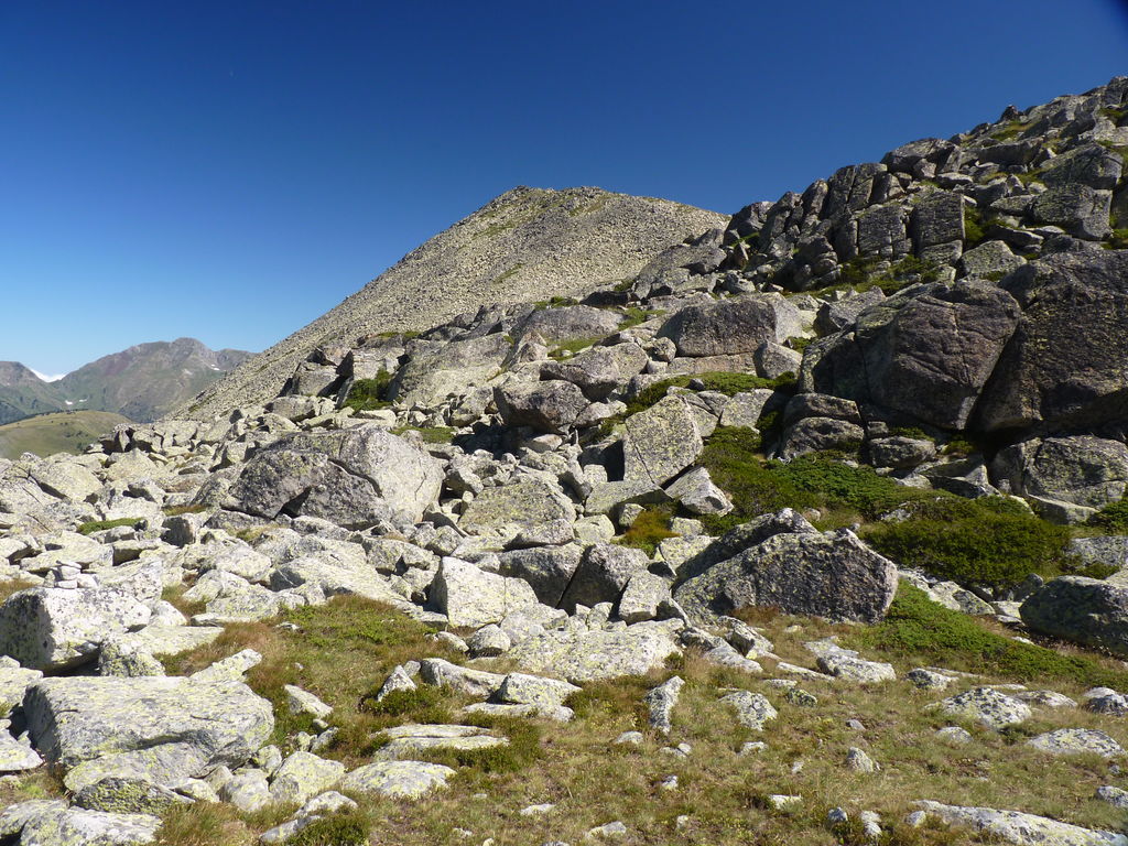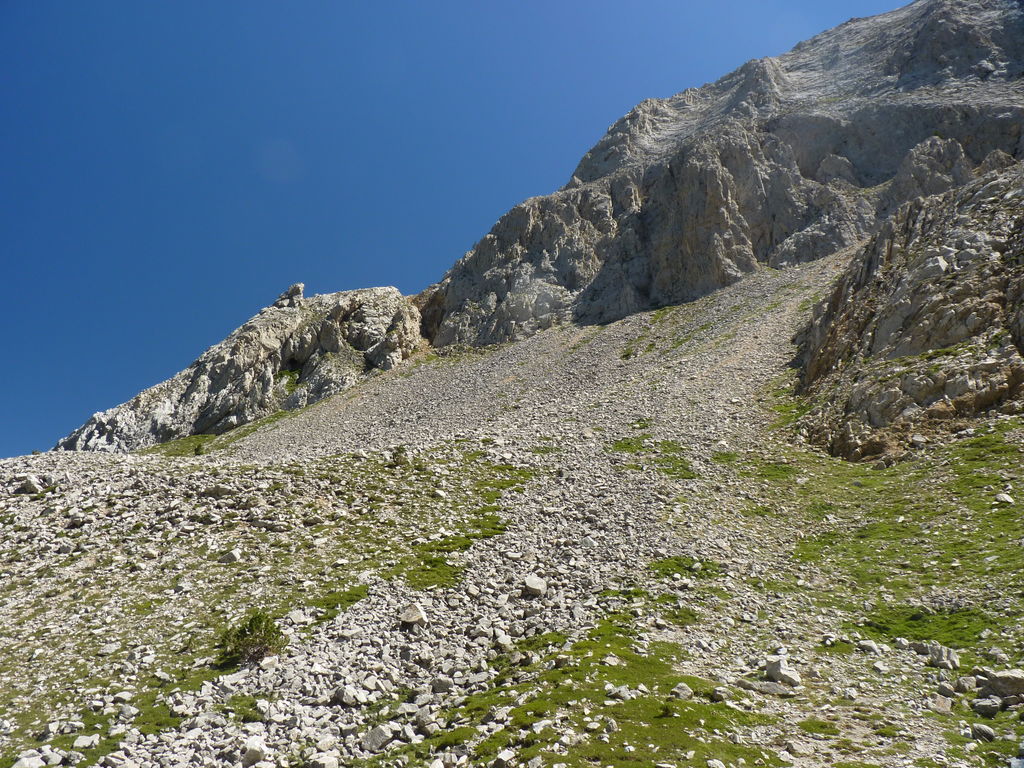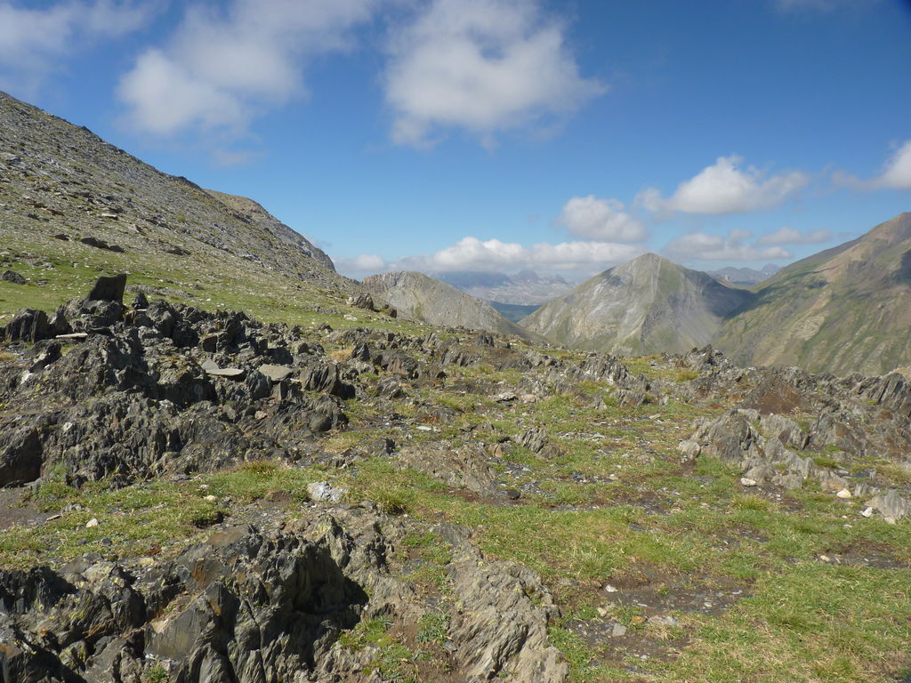 Nous débouchons alors sur une ligne de crête assez plate qui nous mène au mont Rouch « espagnol ». Surprise : nous croisons deux brebis à quelques mètres du sommet!