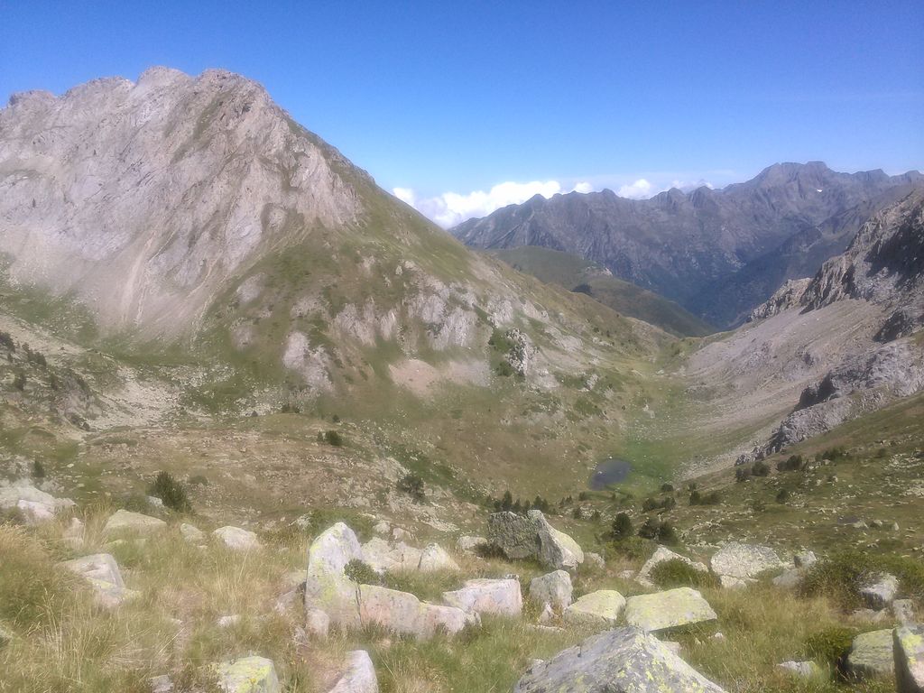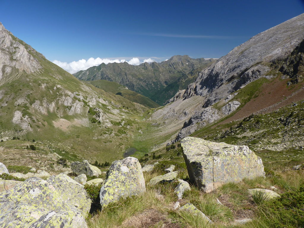 C’est par un sentier historique que nous remontons la Vallée de la Noguera Pallaresa avant de rejoindre la crête frontière au Mont Rouch (2847m). Panorama exceptionnel et première vision des profondes vallées ariègeoises.